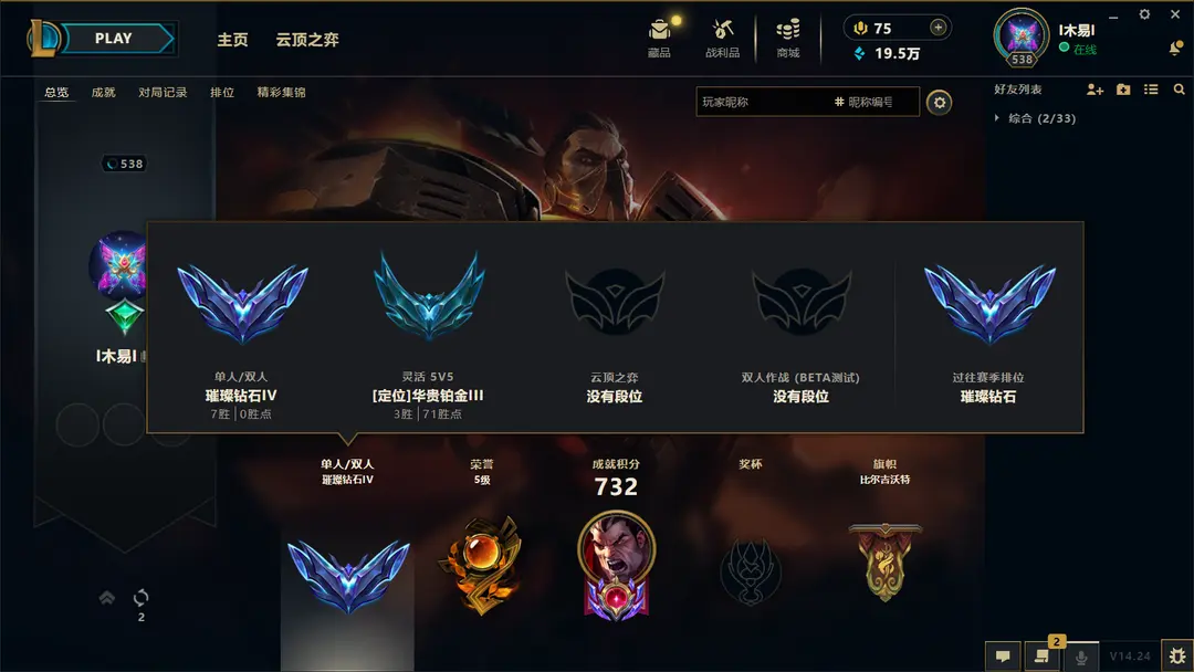 | 角色: 别眷恋了#49052 | 等级: 956级 华贵铂金III |