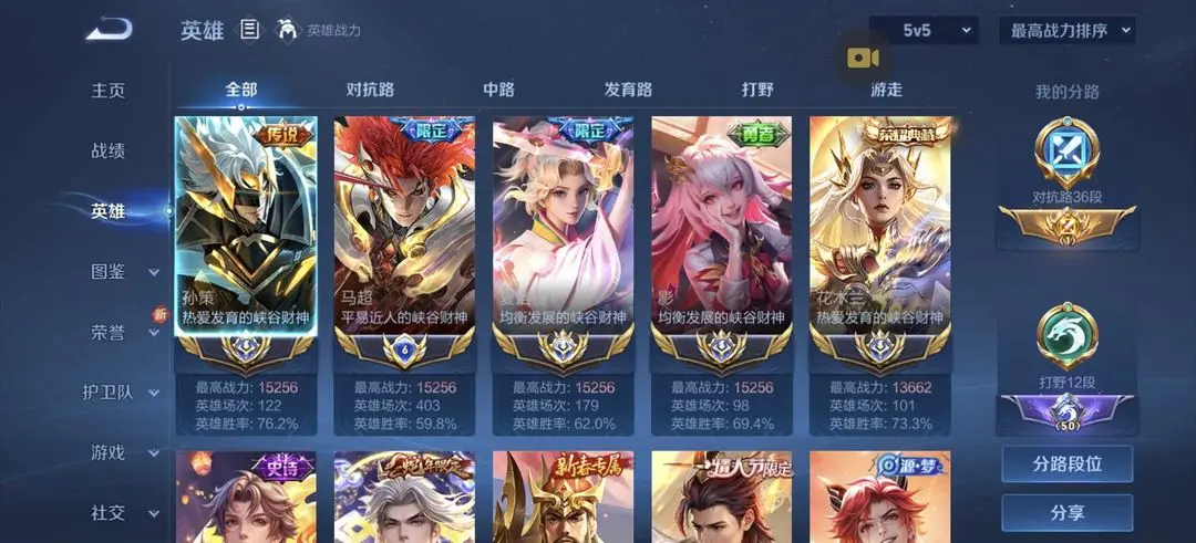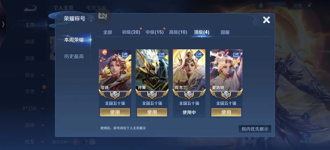 (高危只能娱乐,下单前注意看)在榜四小国标花木兰夏洛特孙策亚连⭐️历史五国服高战力