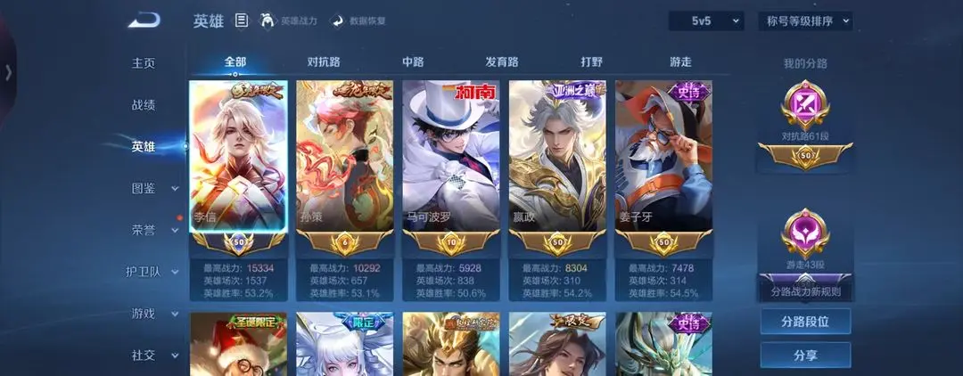 V10丨国标李信5金标对抗61段丨720皮肤19水晶丨青铜小兵丨包天特惠