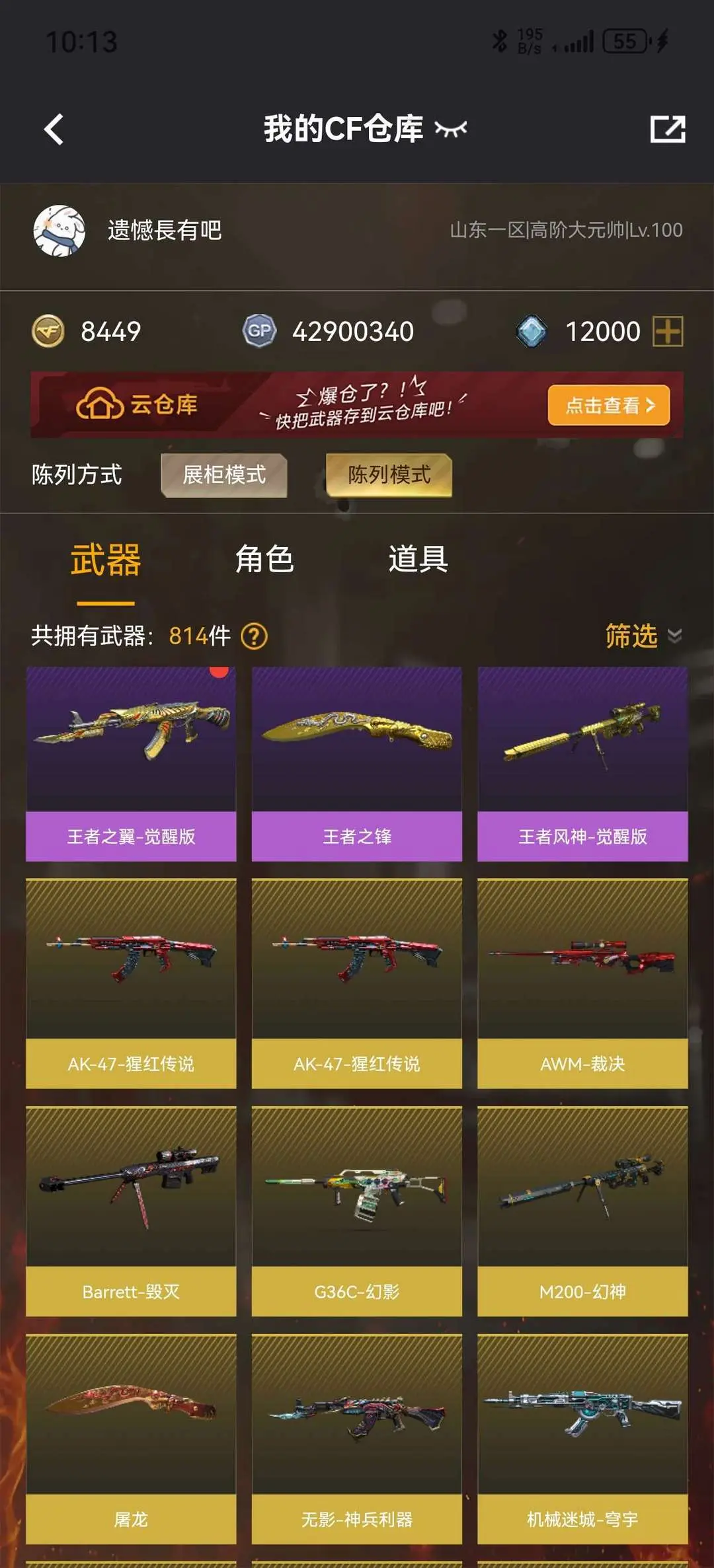 本游戏账号:英雄武器42个; 王者武器29个。 装备不多,但是主武器、副武器、近身武器够用 拥有完美游戏体验。重要的是,特殊装备有:M200-幻神、传说辉光、M4A1-雷神、AN94-超新星、黑骑士-海王、AA-12-雷霆、高爆手雷-竞技荣光、QBZ03-金色蔷薇、麒麟刺、Scar Light-白虎、烟雾弹-竞技荣光、闪光弹-竞技荣光、M200-竞技荣光、M4A1-黑骑士、Barrett-毁灭、Kar98K-星神、AK47-火麒麟、王者幻神-觉醒版、炫金骑士、王者之魄-觉醒版、炫金黑龙、Barrett-雷霆王者-觉醒版、M4A1-雷霆王者-觉醒版、COP 357-雷霆王者-觉醒版、雷霆王者之锋、高爆手雷-雷霆王者、堕天使、炽天使、王者玲珑、圣诞潘多拉-X、QBZ03-金色蔷薇音效卡、Kar98K-星神音效卡、生化弹匣、等,随意畅选。
