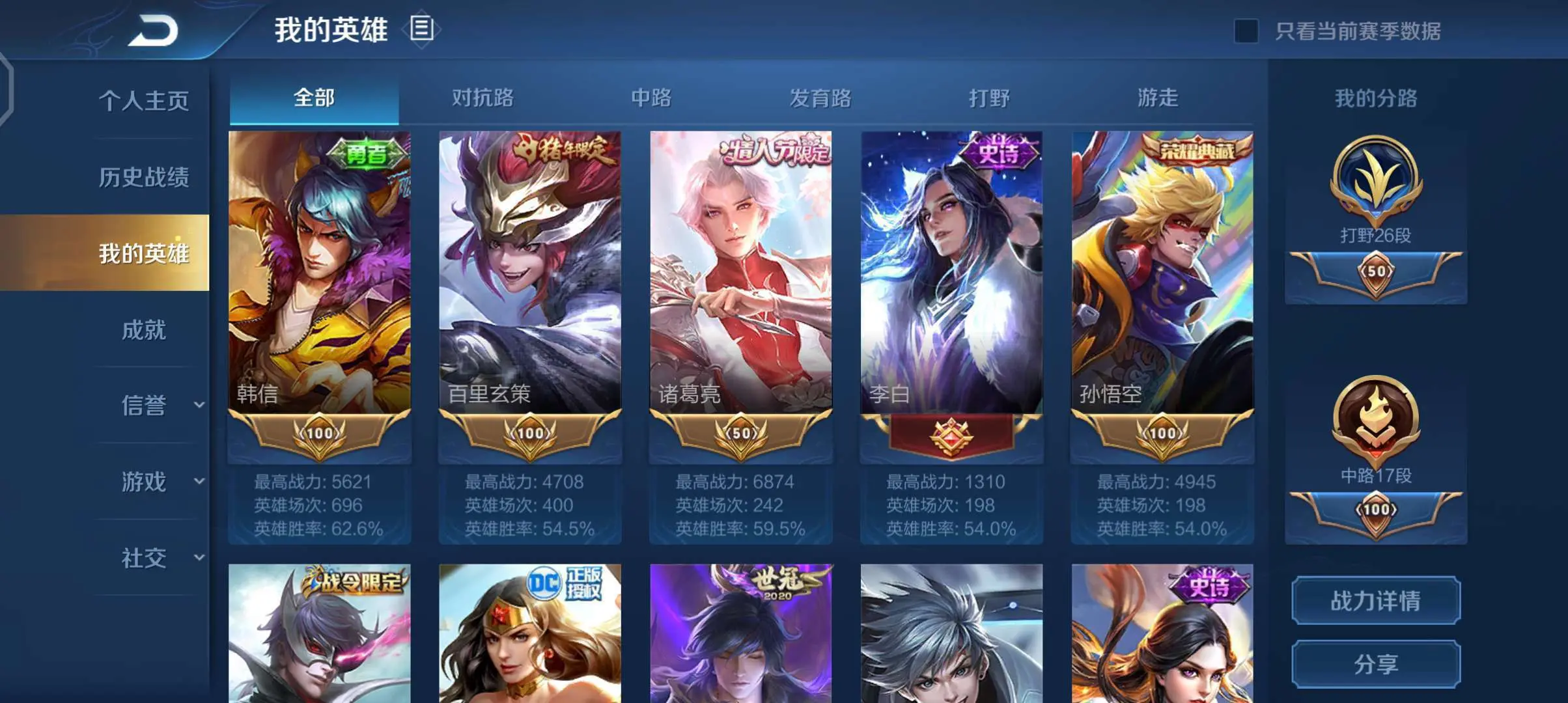 | 英雄: 121 | 皮肤: 241 |