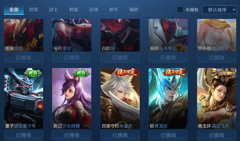 | 英雄: 101 | 皮肤: 109 |