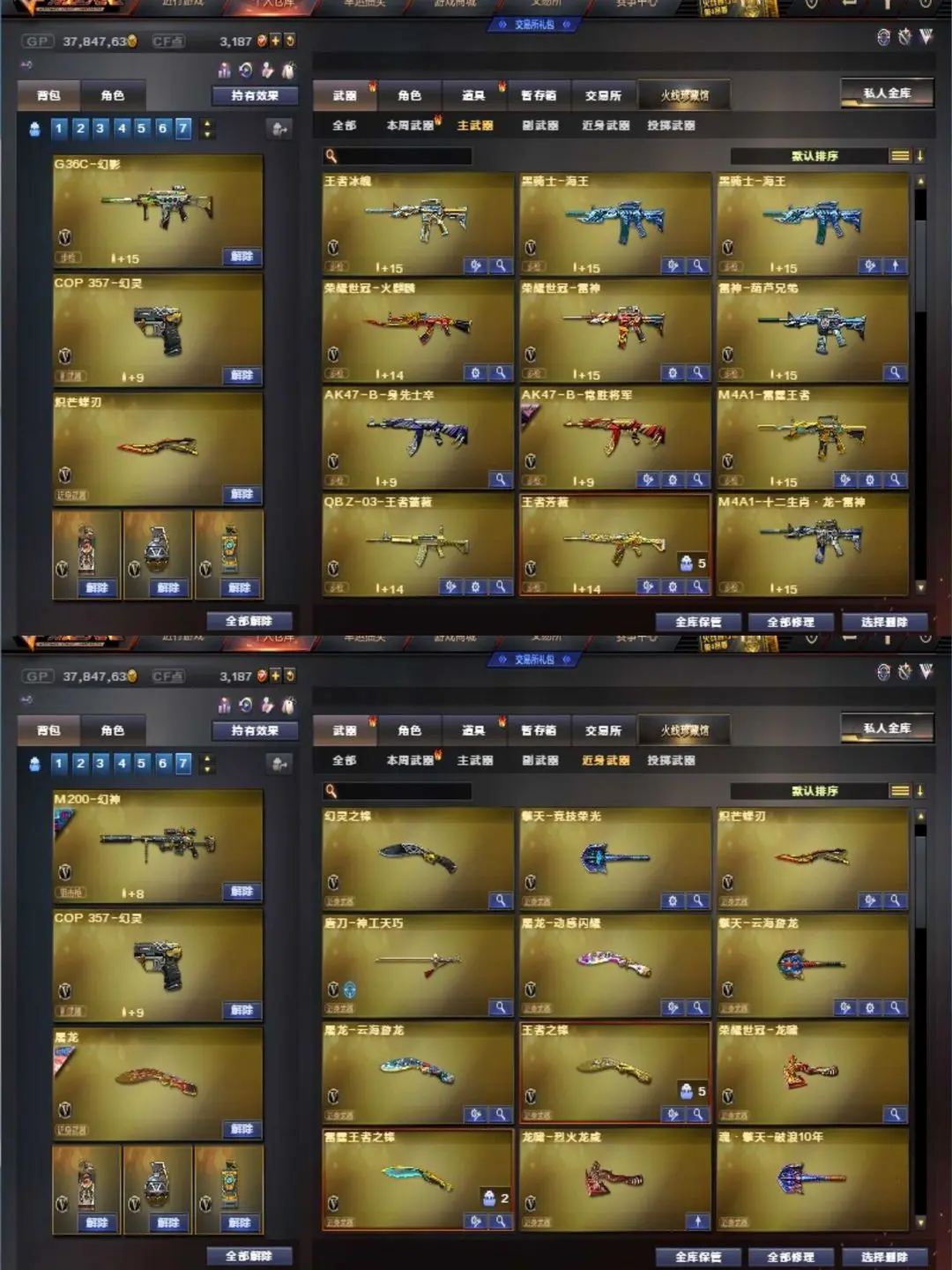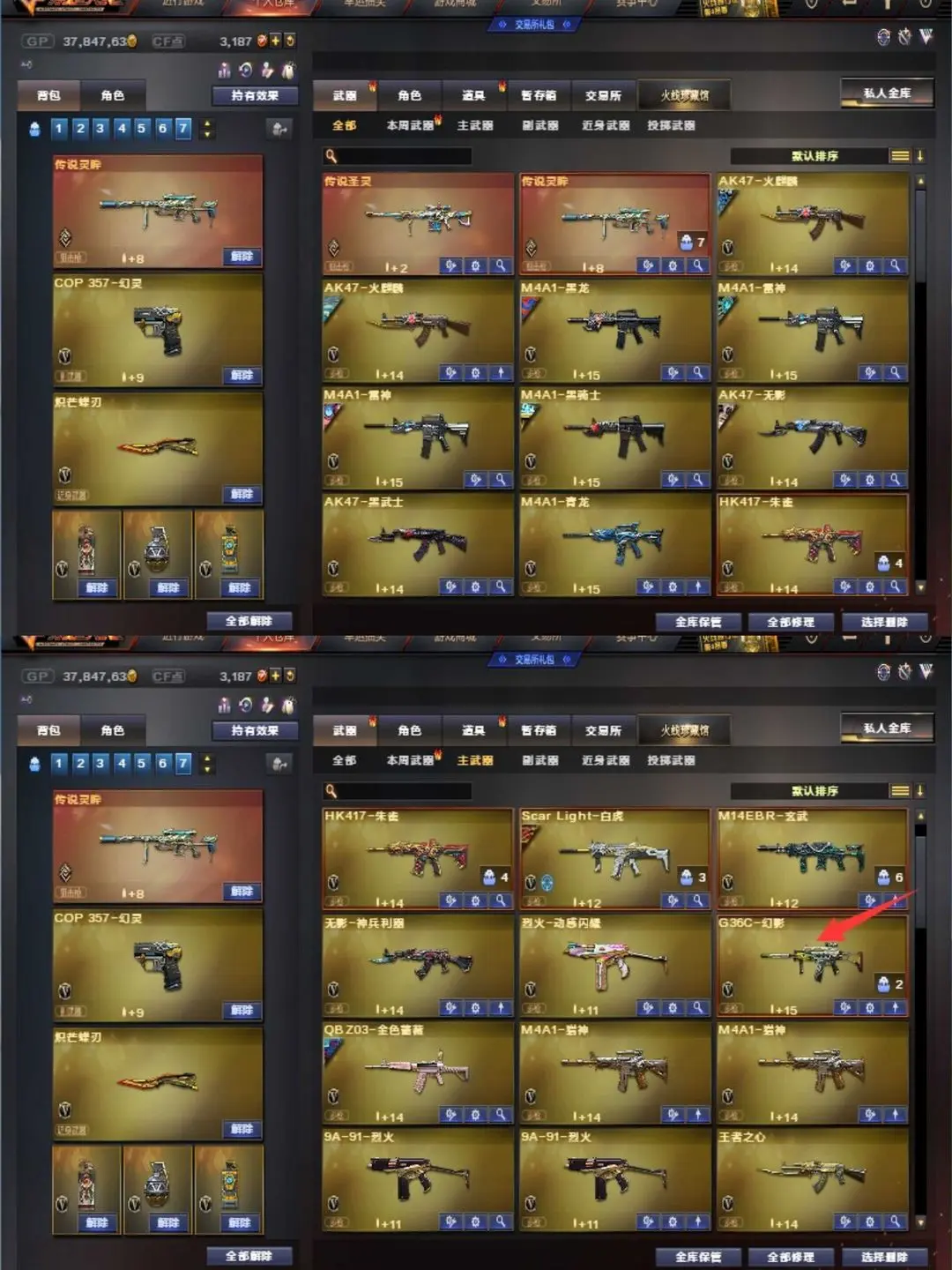 G36幻影电流骇客♥传说灵眸圣灵艾莉莎女帝晴雅炽芒蝶刃♥白鲨冠军幻神白鲨QBZ白虎大汉风骨♥手枪满配
