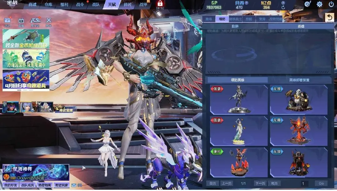 锋影臂铠塔防英雄全开战甲3级终焉丨喳喳裂空赤龙苍龙女帝丨幻海套皇权幻域套6核神凰浩渺天帝套强盾