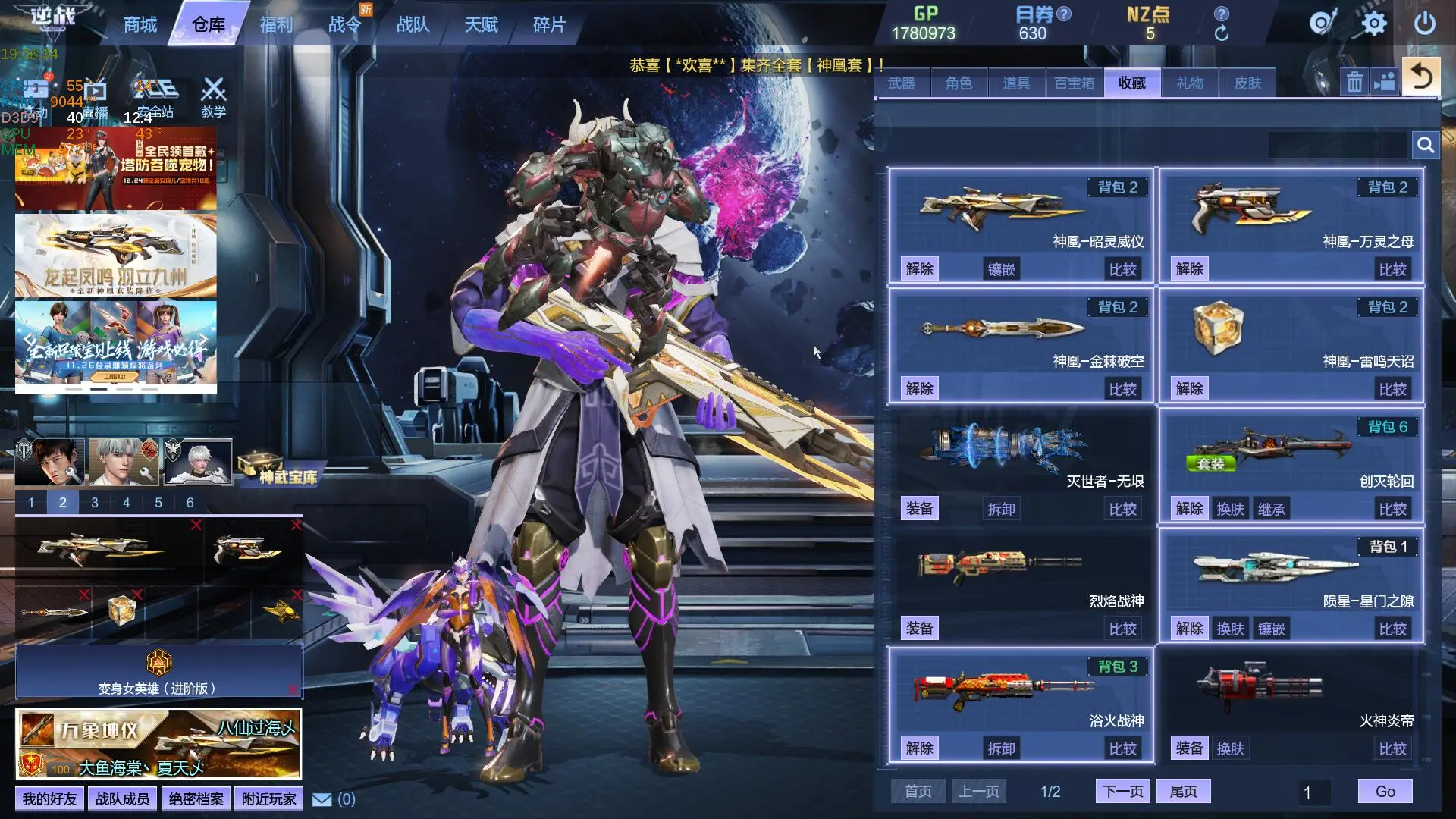 神凰套1核天帝陨星创世大司命琉璃美杜莎海拉希亚塔防全装