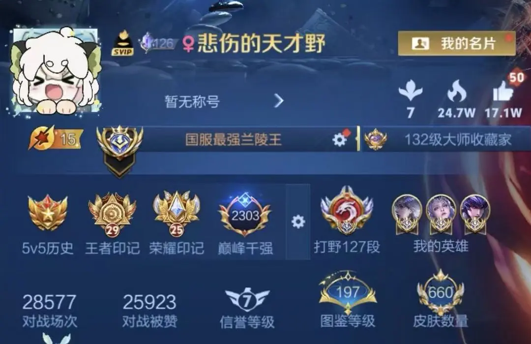 巅峰千强300名框⭐12月正式服在榜国服兰陵王⭐127段打野⭐在榜119段发育⭐21个大国标⭐禁巅峰