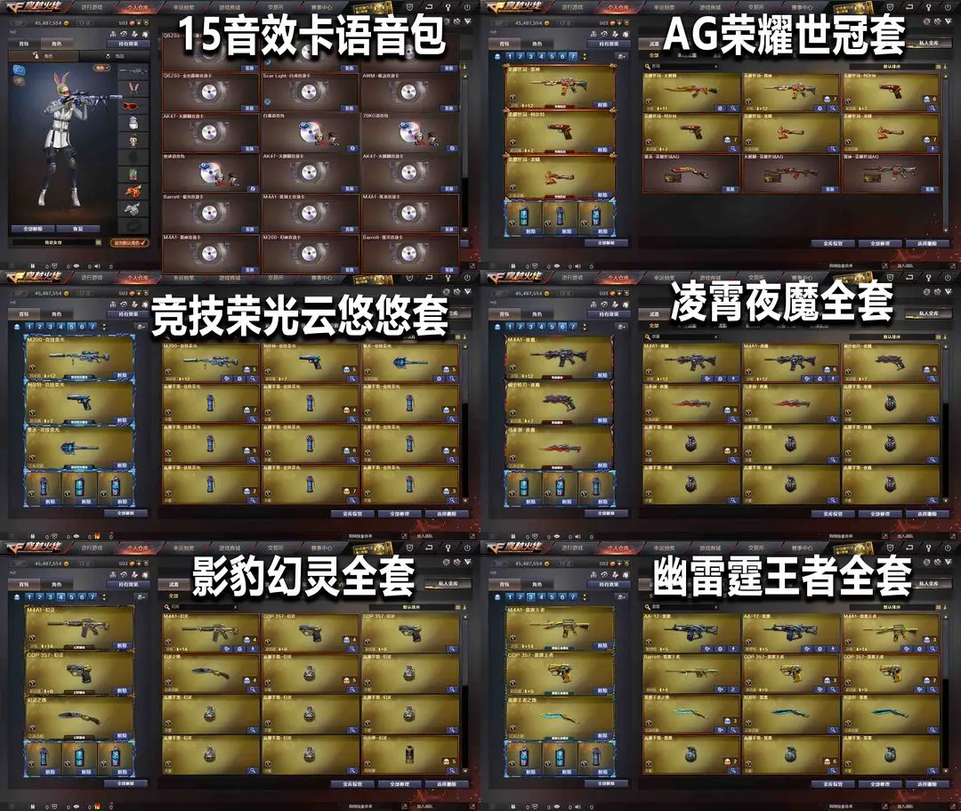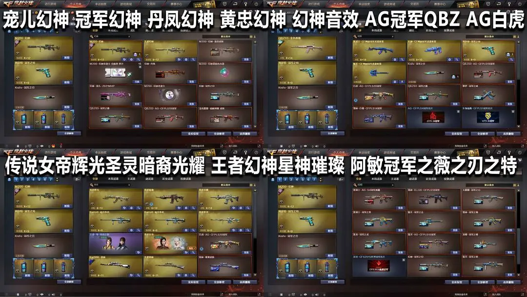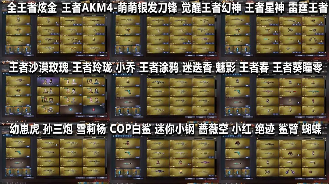 【装备道具】:北部天花板★QBZ枪娘阿敏★QBZ冠军AG★白虎AG冠军★QBZ-冠军之薇★柯尔特-冠军之特★Knife-冠军之刃★幻神宠儿mvp★幻神冠军之幻★幻神丹凤★幻神黄忠★幻神音效卡★传说女帝★传说光耀-传说暗裔-传说辉光★传说圣灵★888v★6烈7盘极品高端号★王者幻神-王者星神-传说圣灵-m200幻神-m200竞技★竞技荣光云悠悠★AG荣耀世冠套★影豹幻灵套★凌霄夜魔套★AG冠军典藏★雷神LGD冠军★毁灭AG冠军★冠军之心冠军之魄冠军之怒冠军之势冠军之武之击之啸★赛事荣耀套★赛事2018皮肤★耀金星空套★王者白虎★玄武+朱雀+白虎+青龙★传说女帝★云悠悠★荒漠琉璃.葵.零.凌霄★瞳+影豹.雨棠.炫.王者春.王者迷迭香★王者魅影+王者玲珑-王者小乔+王者沙漠玫瑰+新海豹★15音效语音包★雷神宠儿★全王者全炫金★全赛事皮肤★王者AKM4-萌萌银发刀锋★幼崽虎★孙三炮★雪莉杨★ COP白鲨★迷你小钢★蔷薇空★雷神小红★绝迹★鲨臂★猫枪★斯泰尔蝴蝶(雷霆王者6-幻兽30-竞技30-电竞4-夜魔32-雷暴8-堕天神5-雷霆13★6烈龙★6盘龙★7炼狱★7黑骑士★佣兵觉醒★捕食者之眼★