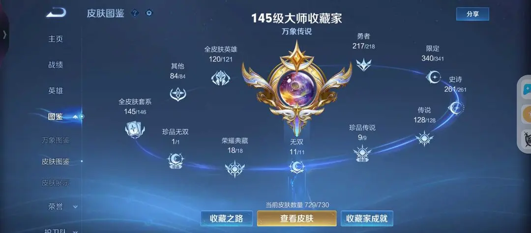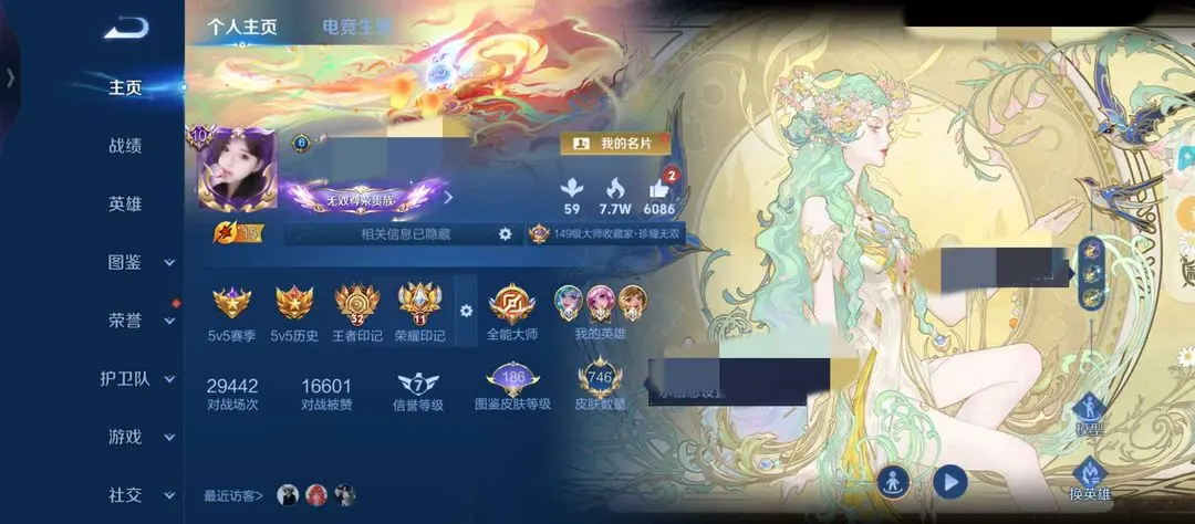 本游戏账号: V10无双贵族用户,基础段位:至尊星耀III,英雄多,皮肤多。典藏皮肤17个,感受典藏皮肤带来的优质体验快感,FMVP皮肤10个,尽情享受FMVP皮肤带来的主角光环, 私人所属英雄皮肤有:诸葛亮 星域神启||铠 银白咏叹调||孙尚香 杀手不太冷||鲁班七号 星空梦想||芈月 大秦宣太后||夏侯惇 无限飓风号||李白 鸣剑·曳影||武则天 倪克斯神谕||关羽 赤影疾锋||貂蝉 幻阙歌||程咬金 活力突击||韩信 弑枪猎影||花木兰 九霄神辉||孙悟空 全息碎影||虞姬 神鉴启示录||小乔 天鹅之梦||瑶 拾光映像,等等