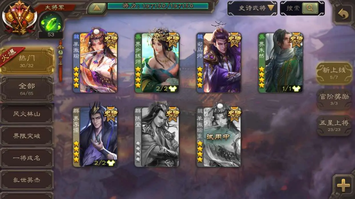 【线下租有卡】全灯全扩一等大将军 神甘宁 南华老仙 鲍三娘动