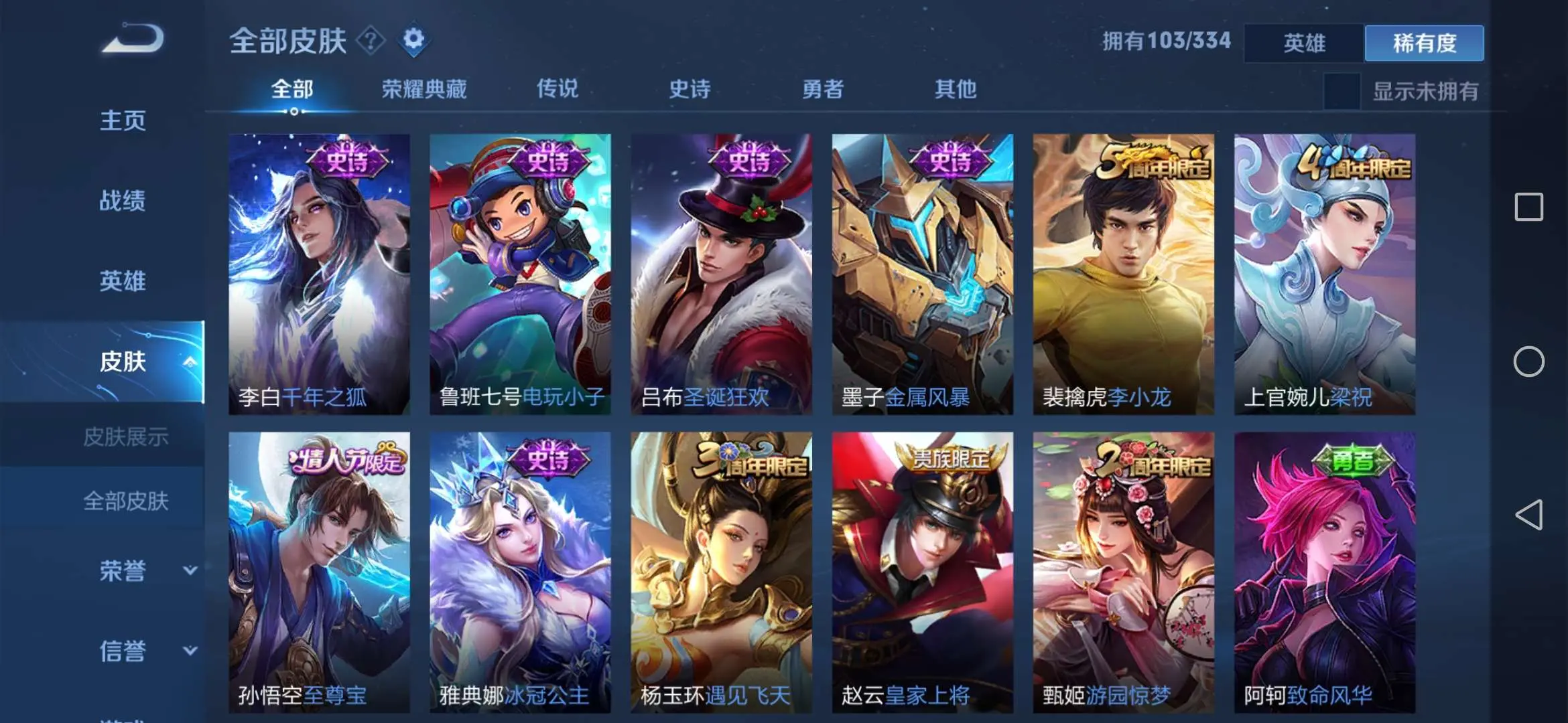 本游戏账号: V7用户,基础段位:永恒钻石,英雄多,皮肤多。 私人所属英雄皮肤有:武则天 海洋之心||貂蝉 仲夏夜之梦||狄仁杰 超时空战士||孙尚香 末日机甲达摩 沙漠行僧||吕布 御风骁将||关羽 冰锋战神||后羿 辉光之辰||孙悟空 至尊宝,等等
