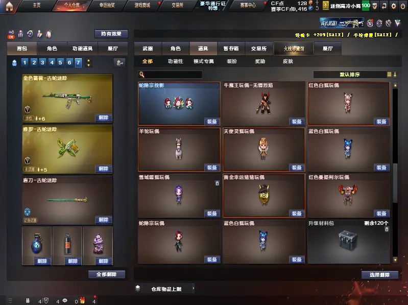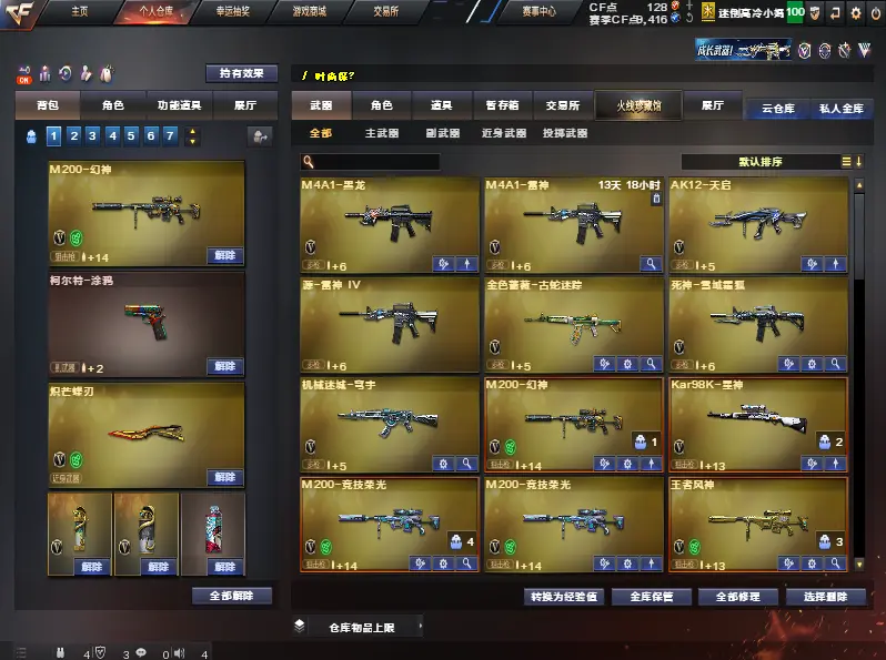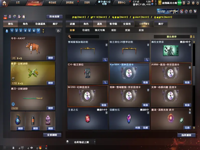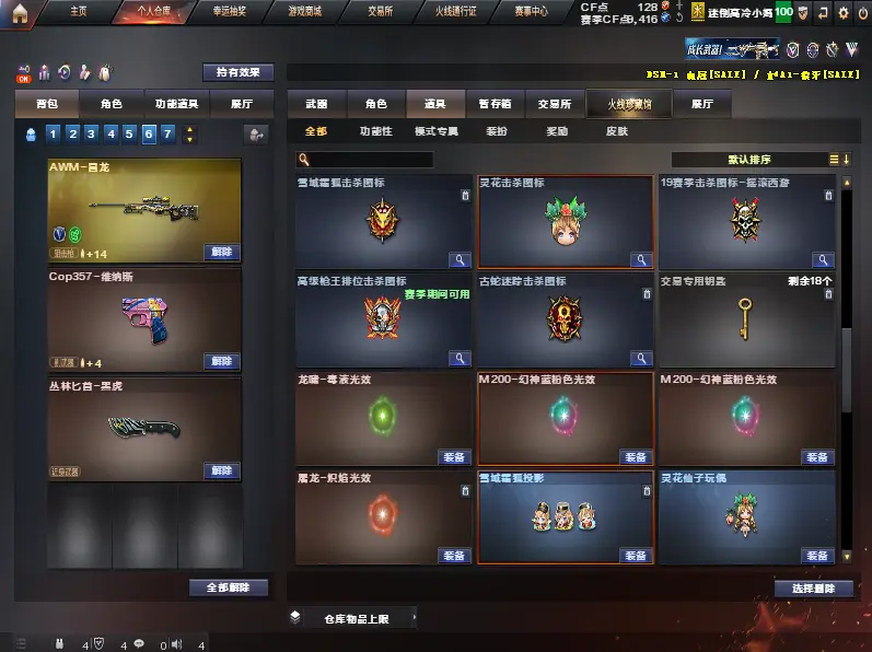 幻神丨幻神音效卡丨星神丨星神音效卡丨幻神竞技荣光全套丨王者风神(觉醒)丨蝴蝶刀丨马枪丨Cat刀锋丨牛牛AK丨Barrett曼陀罗丨QBZ斯沃特丨古蛇迷踪套丨王者风势丨王者之城丨王者之圣丨王者蔷薇丨炫金火麒麟