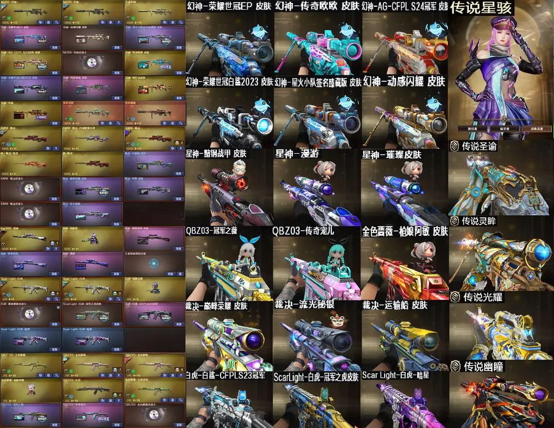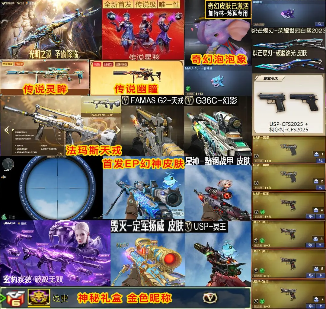【装备道具】:传说星骇/传说圣谕/传说光耀/传说幽瞳/传说灵眸/传说幽冥❤幻神-荣耀世冠EP/幻神-电流骇客/幻神-动感闪耀/幻神-纸灯龙/幻神-星火小队签名臻藏版/幻神-AG-CFPL S24冠军 皮肤/幻神-欧欧/幻神-荣耀世冠白鲨2023/幻神-周瑜/幻神-丹凤/星神-黯钢战甲/星神-漫游/星神-璀璨/毁灭-定军扬威/裁决-运输船/裁决-流光秘银/裁决-巅峰荣耀/裁决-羽掣/雷神-宠儿/白虎-白鲨-S23冠军/白虎-冠军之虎/Scar-白虎-暗星/QBZ-冠军之薇/QBZ-枪娘阿敏/QBZ-传奇宠儿/天启-黯钢战甲/荣耀世冠白鲨2023炽芒蝶刃-破浪逐光/幻神音效卡/金色蔷薇音效卡/天罚音效卡/裁决音效卡/极光音效卡/毁灭音效卡/4把USP-冥王/G36C-幻影/柯尔特-荣耀世冠/法玛斯天戎/柯尔特-电竞装甲/柯尔特-竞技荣光/破空枪刃-夜魔/柯尔特-冠军之特/USP-雷暴/COP-堕天神/雷霆之契/❤电竞装甲套装/堕天神套装/夜魔套装/雷暴套装/玄豹套装❤VEPR-12-宙斯/沙漠玫瑰/隐/QBZ03-天罚/炼狱奇幻泡泡象/异变清道夫-蛇影双骄/斯泰尔-蝴蝶/炼狱-奇幻宇宙万象