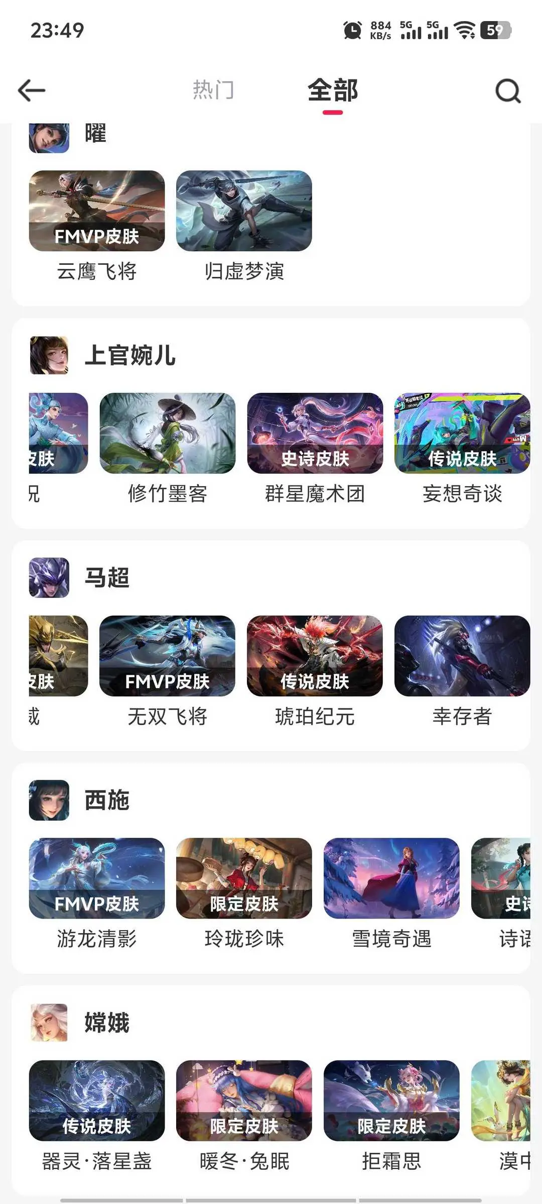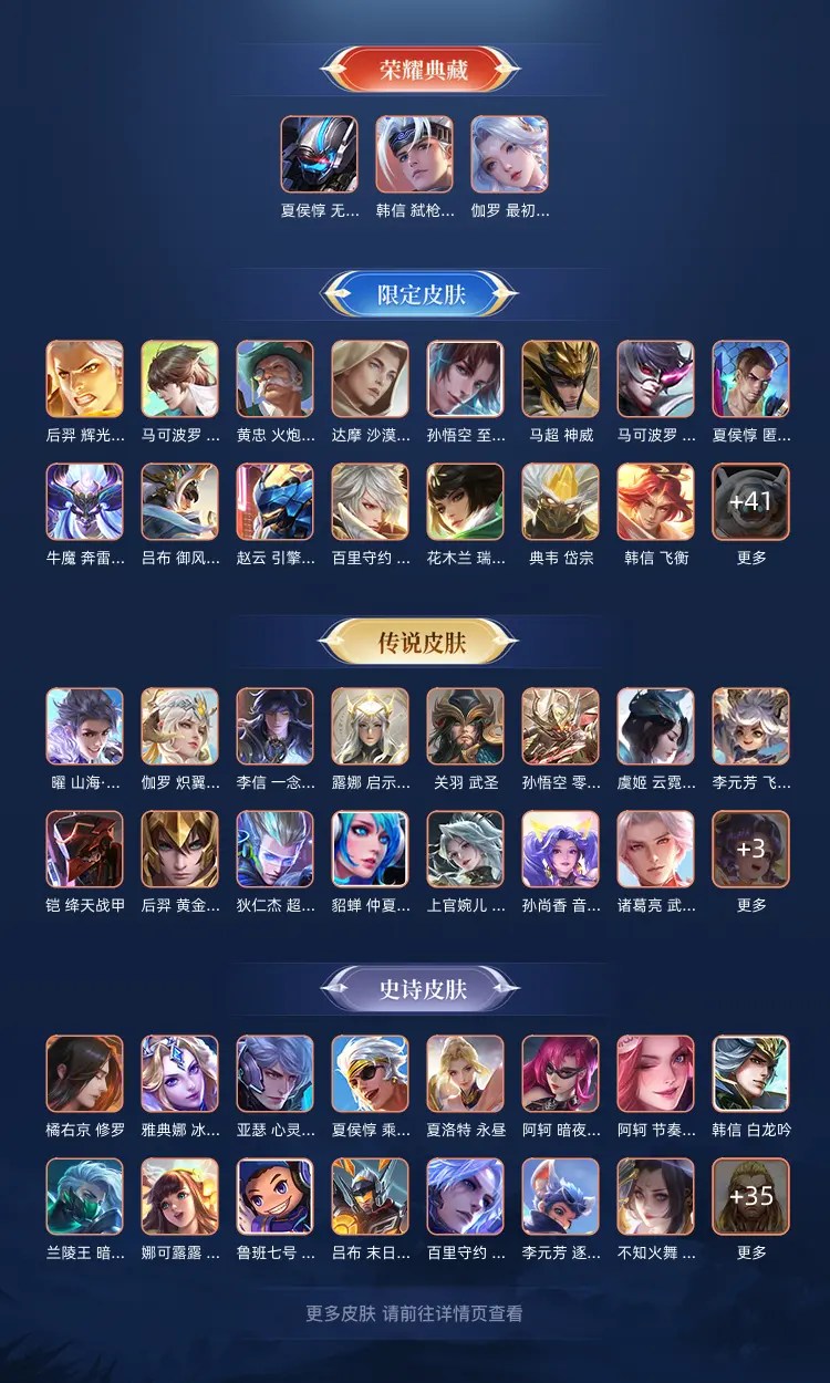 本游戏账号: ,英雄多,皮肤多。典藏皮肤2个,感受典藏皮肤带来的优质体验快感,FMVP皮肤8个,尽情享受FMVP皮肤带来的主角光环, 私人所属英雄皮肤有:夏侯惇 无限飓风号||韩信 弑枪猎影虞姬 云霓雀翎||虞姬 启明星使||貂蝉 仲夏夜之梦||孙策 乘龙·淬吴钩||孙策 时之奇旅||云中君 群星魔术团||赵云 乘龙·铭钟鼎||鲁班七号 时之奇旅||露娜 启示之音||马超 琥珀纪元||铠 绛天战甲||铠 冥王哈迪斯||云缨 鹤归松栖||云缨 幻光神枪||吕布 遇见神鼓||伽罗 炽翼辉光||兰陵王 影龙天霄||马可波罗 妄想实况||孙尚香 音你闪耀||孙尚香 乘龙·问璇玑||关羽 武圣||李信 一念神魔||诸葛亮 武陵仙君||诸葛亮 鹤羽星尊||上官婉儿 神器·万象笔||上官婉儿 妄想奇谈||孙悟空 零号·赤焰||李元芳 飞鸢探春||桑启 鸣野蒿||嫦娥 器灵·落星盏||嬴政 玄雷天君||墨子 黄金天蝎座||狄仁杰 超时空战士||狄仁杰 夜礼服假面||后羿 黄金射手座,等等