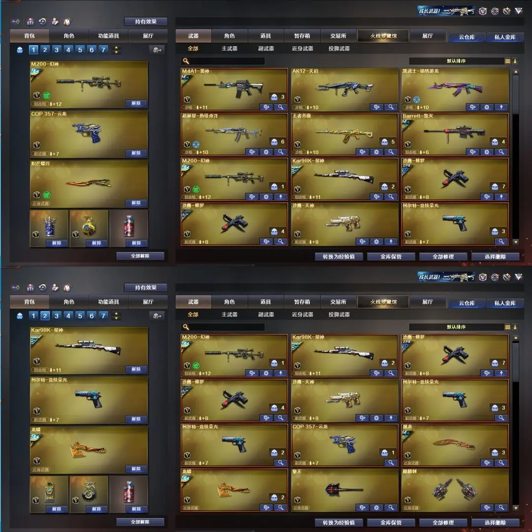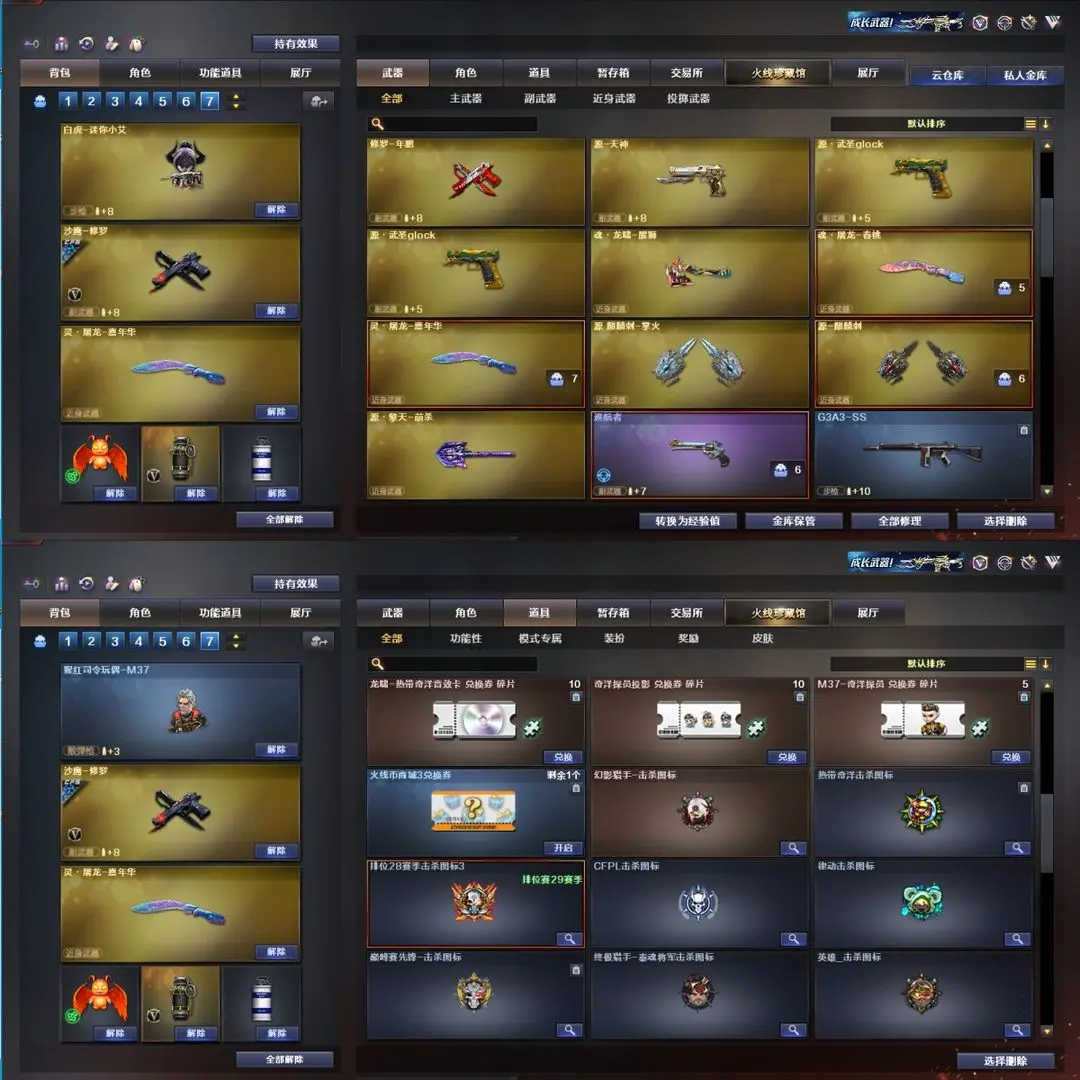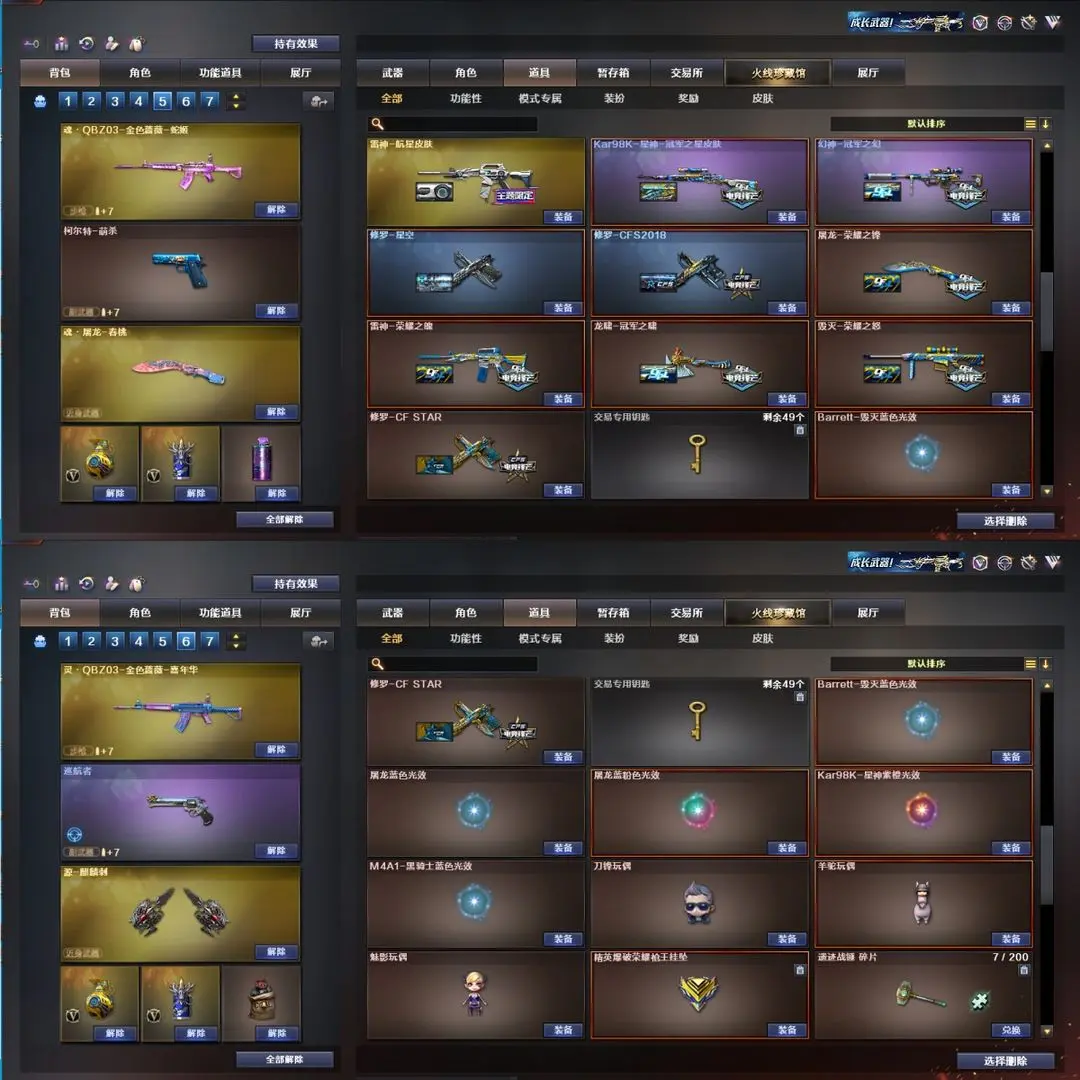 幻神-冠军之幻丨星神-冠军之星皮肤丨蝴蝶刀丨王者潘多拉(四防)丨王者芳薇(觉醒)丨雷神-荣耀之魄丨毁灭-荣耀之怒丨屠龙-荣耀之锋丨雷神-航星皮肤丨修罗-CFS2018丨修罗-星空丨COP-云龙丨柯尔特-竞技荣光丨白虎-迷你小艾丨猩红司令玩偶-M37丨云龙投掷套丨雷暴投掷套丨雷霆投掷套丨雷霆王者投掷套