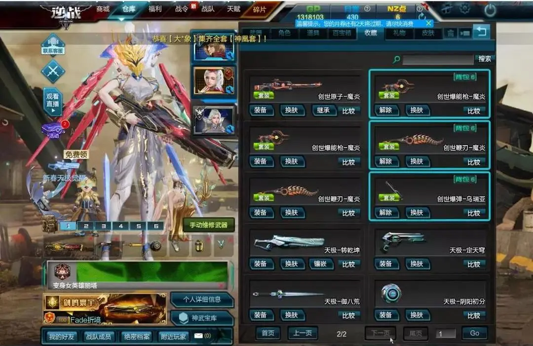 天帝套丨七核心天鲲套丨天神套丨创世套丨世代之影丨飓风之神丨泰坦双星丨灭世者无垠丨原子力量-战意星河丨精绝兽神两把丨极寒冰神丨炼狱蝎王丨烈焰战神丨火神炎帝丨幽冥毒王---------丨四戒:血泊之戒丨天使之泪丨盘龙指环丨黑天之怒丨五宠:动天使丨创世霸王龙丨宠物饕餮丨星云战车丨地狱烈焰犬-------虎王套丨恐龙套(霸王棘龙套)丨狼王套丨鹰王套丨龙皇套丨百鸟套丨圣诞m107混沌丨msr电离对撞丨圣光裁决丨m95飞电丨msr蔷薇丨msr大圣丨海王-源代码丨电光王者丨天王丨ak核子裂变丨95式离子熔岩丨95式南瓜玄武丨ak龙皇丨m4a1龙皇丨msr龙皇丨---------丨变身英雄丨变身英雄增幅器丨变身女英雄丨天网丨天启丨8898丨歼灭者丨磁暴阵列丨过载丨金币卡丨专家卡丨技能格丨星光炮丨风遁丨强固丨加速