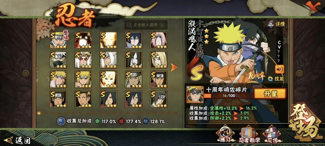 十尾带土⭐十周年鸣佐⭐32S⭐仙人巳月⭐暴怒六尾鸣人⭐漂泊小南⭐秽土二代⭐对决卡卡西