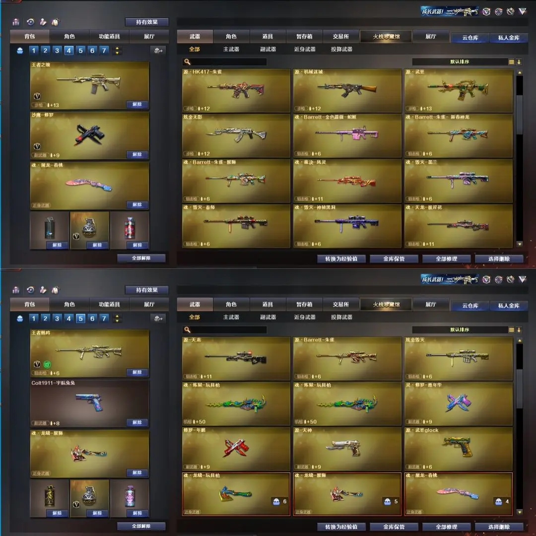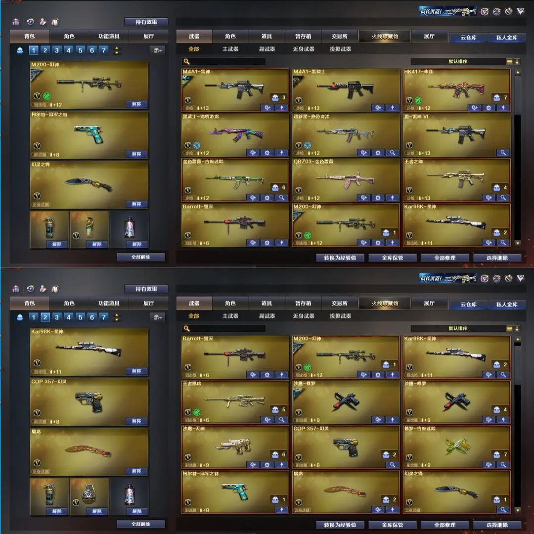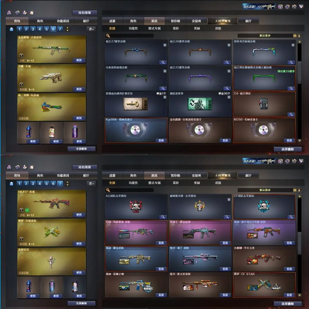 幻神-电流骇客 皮肤丨幻神音效卡丨星神丨星神音效卡丨女主播(四防)丨隼丨柯尔特-冠军之特丨COP-幻灵丨幻灵之锋丨幻灵投掷套丨雷神-荣耀之魄丨雷神-耀金皮肤丨HK417-朱雀丨古蛇迷踪套丨王者之魄(觉醒)丨王者凰鸣(觉醒)丨炫金无影丨炫金毁灭