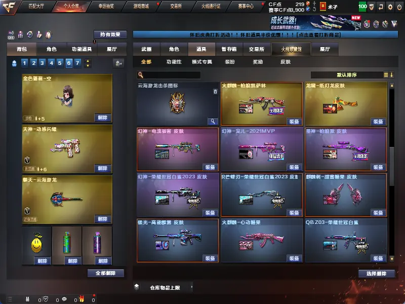 荣耀世冠白鲨2023幻神丨宠儿幻神丨电流骇客幻神丨幻神音效卡丨枪娘默星神丨星神音效卡丨星神长生圣莲丨荣耀世冠白鲨2023蝴蝶刀丨荣耀世冠白鲨2023柯尔特丨火麒麟枪娘凯萨林丨新海豹突击队丨晴雅丨司雨丨炽天使丨QBZ独角丨幻神枪娘爱丽丝丨金色蔷薇空丨COP白鲨丨投掷套