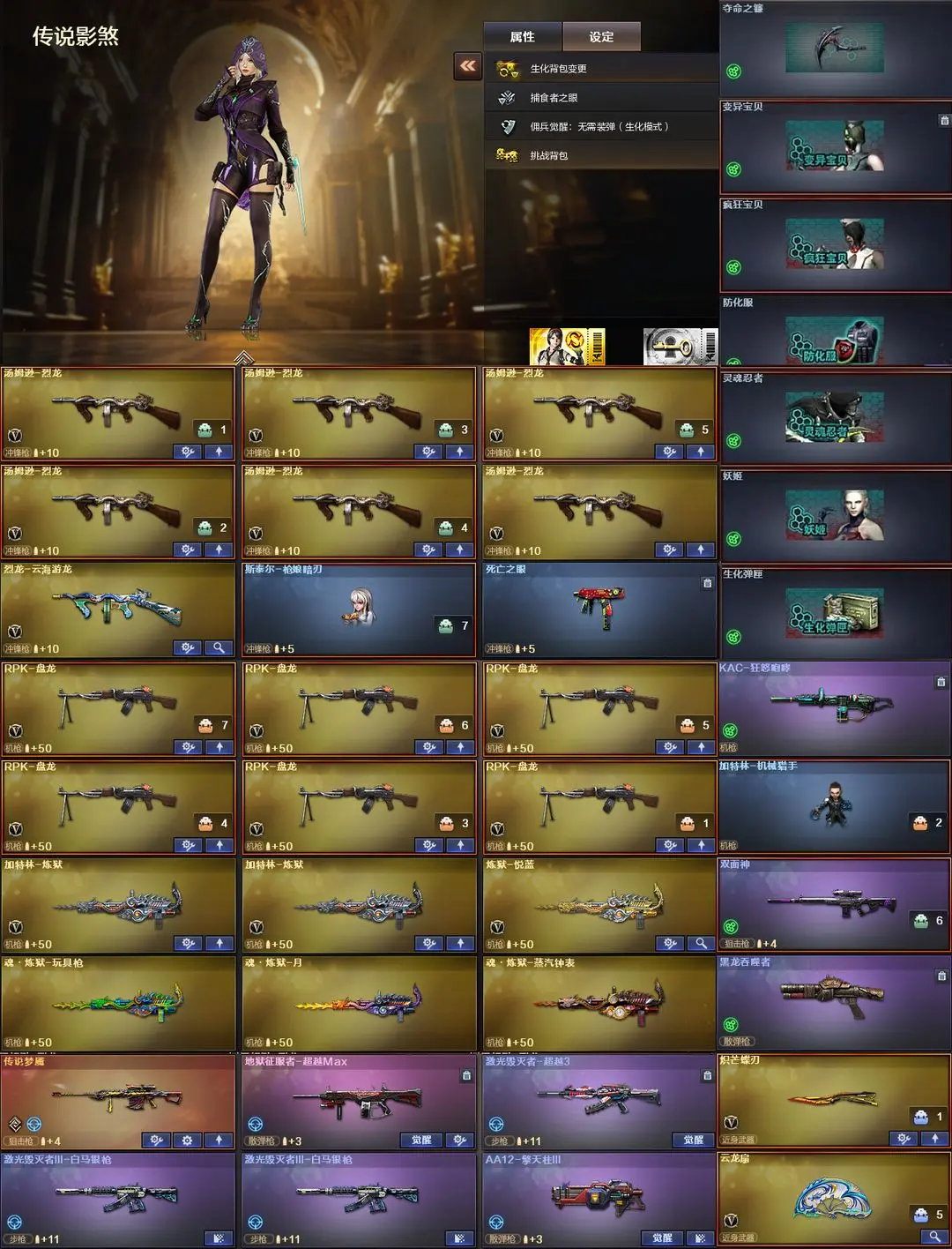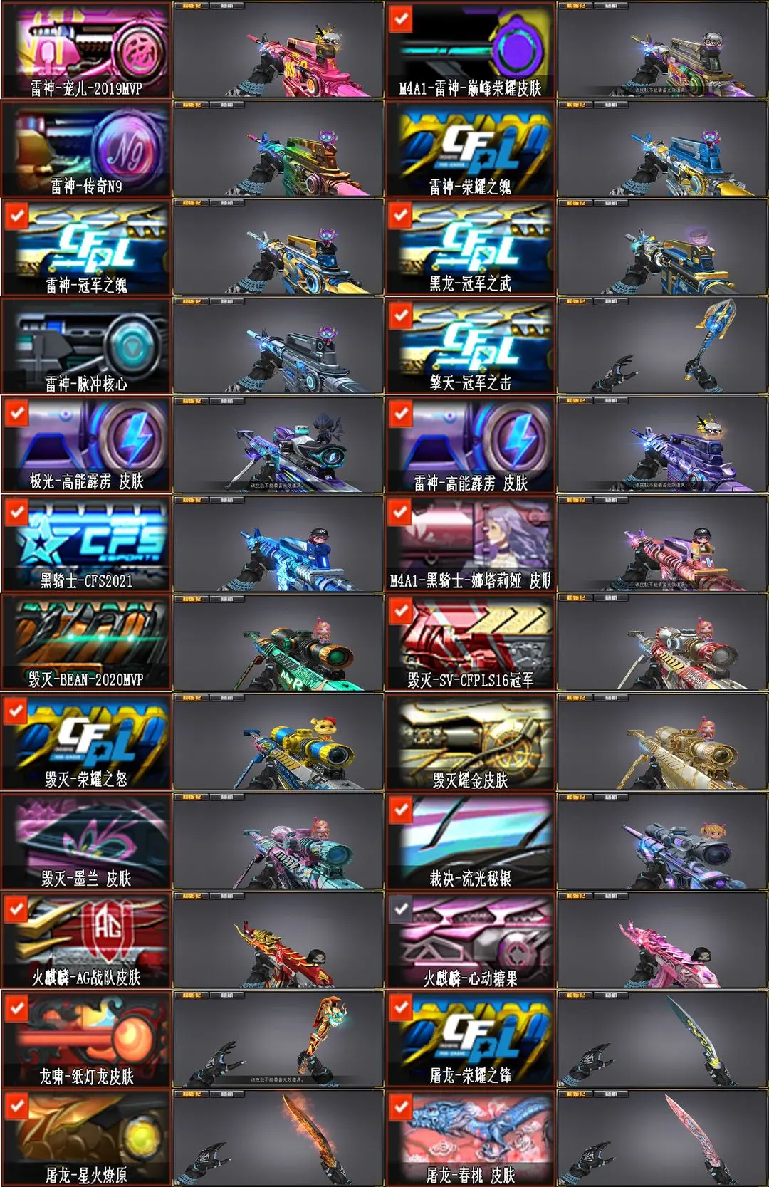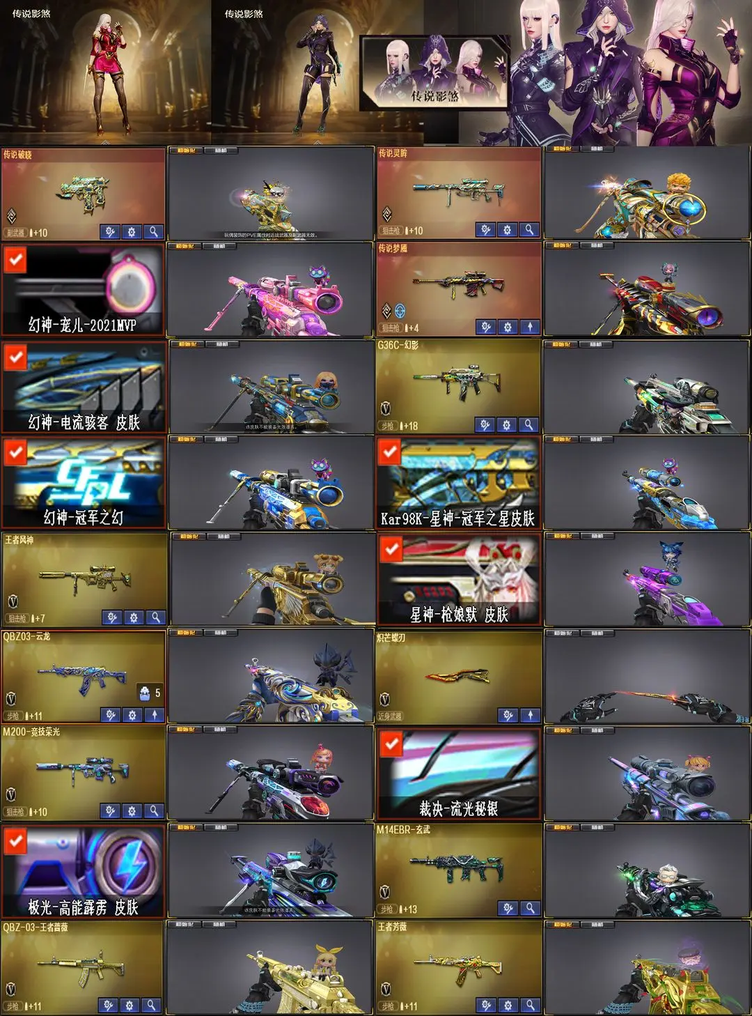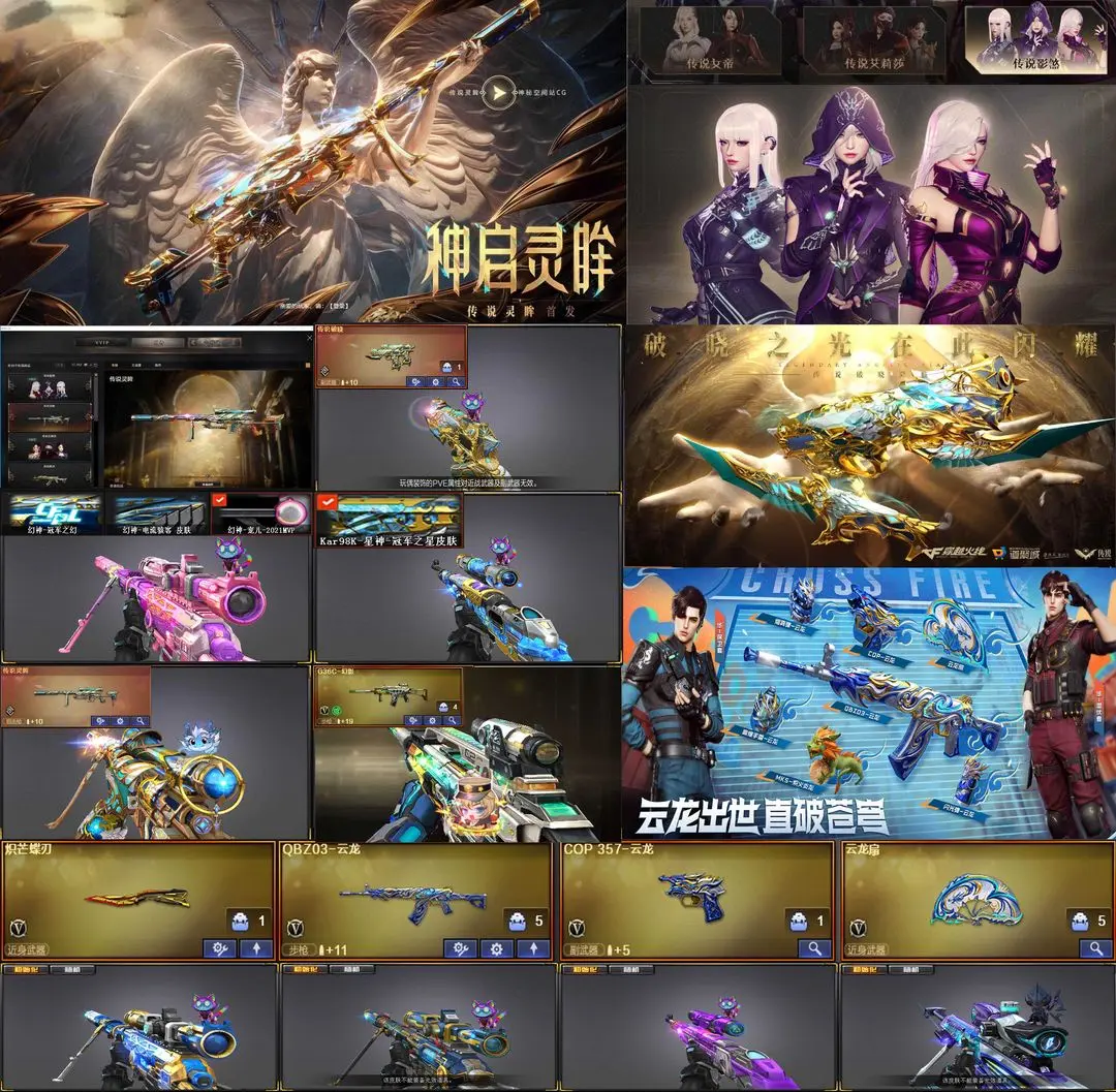 【装备道具】:4传说【M200-幻神~幻神宠儿2021MVP~幻神冠军之幻~幻神电流骇客】【炽芒蝶刃~COP-白鲨】【《四防》传说影煞~传说灵眸~传说破晓~传说梦魇】【G36C-幻影~王者风神~王者芳薇】【98k-星神~星神冠军之星~星神枪娘默】【QBZ-金色蔷薇2把~QBZ0-金色蔷薇音效卡【QBZ王者蔷薇~M14EBR玄武】竞技荣光套【M200-竞技荣光~柯尔特-竞技荣光2把~擎天-竞技荣光】【M4幻灵~COP-幻灵~幻灵之锋】【QBZ-云龙~COP-云龙-云龙伞】超级生化组合【6盘龙~炼狱2~炼狱悦蓝 ~加特林机械猎手 6烈龙~斯泰尔-枪娘暗刃~死亡之眼 双面神 炽芒蝶刃 幻灵猎姬皮肤 】【云悠悠 司雨 王者潘多拉/王者影豹 影豹 岚兮儿 葵 零 】【职业选手~N9语音包~70KG语音~白鲨语音~绝迹语音】【极光音效卡~裁决流光秘银】【黑骑士音效卡~黑骑士CF2021】【雷神~脉冲~巅峰荣耀~高能~宠儿2019MVP~传奇N9~荣耀之魄~冠军之魄】【擎天~冠军之击】【星火燎原~荣耀之锋3皮】【毁灭~SVCFPLS16冠军~2020MVP~耀进~荣耀之怒】【黑龙~冠军之武】