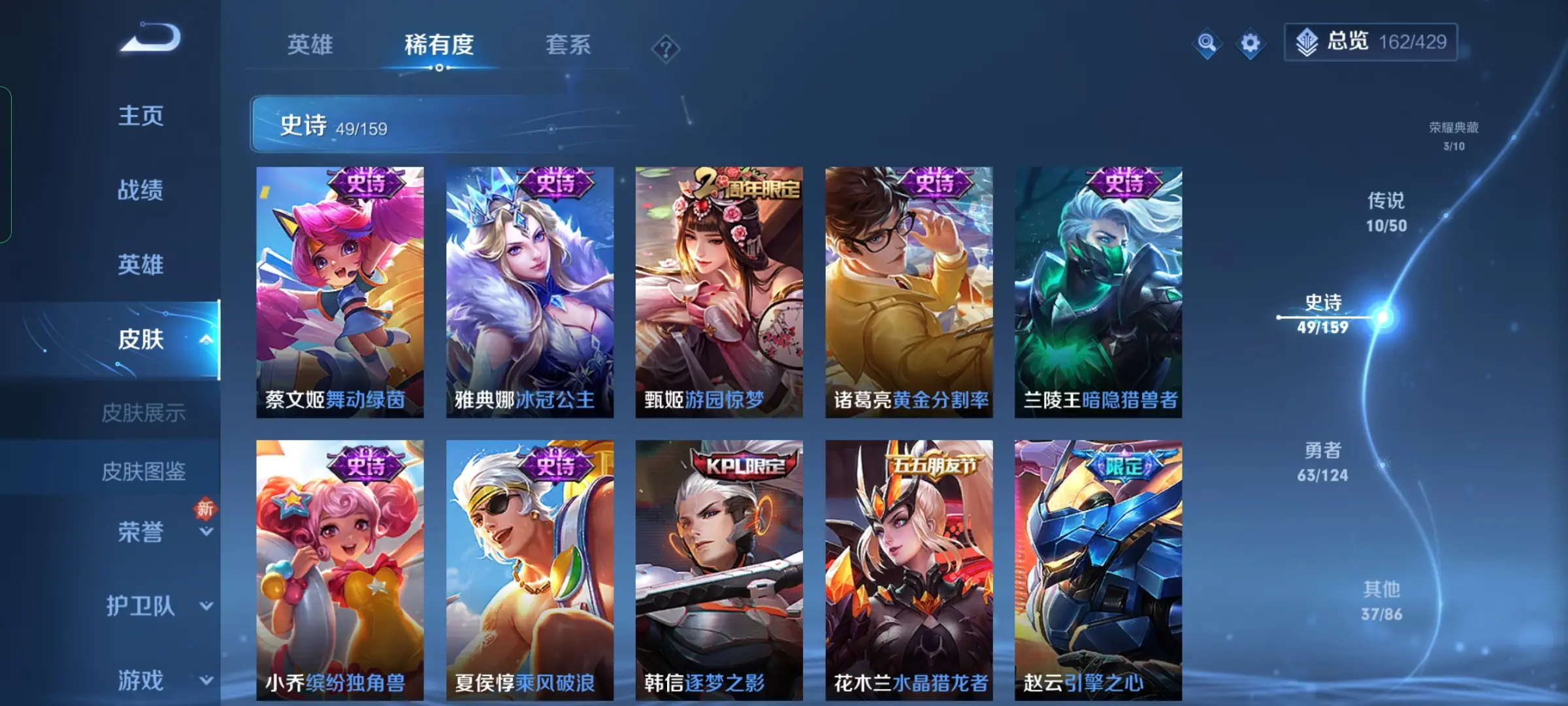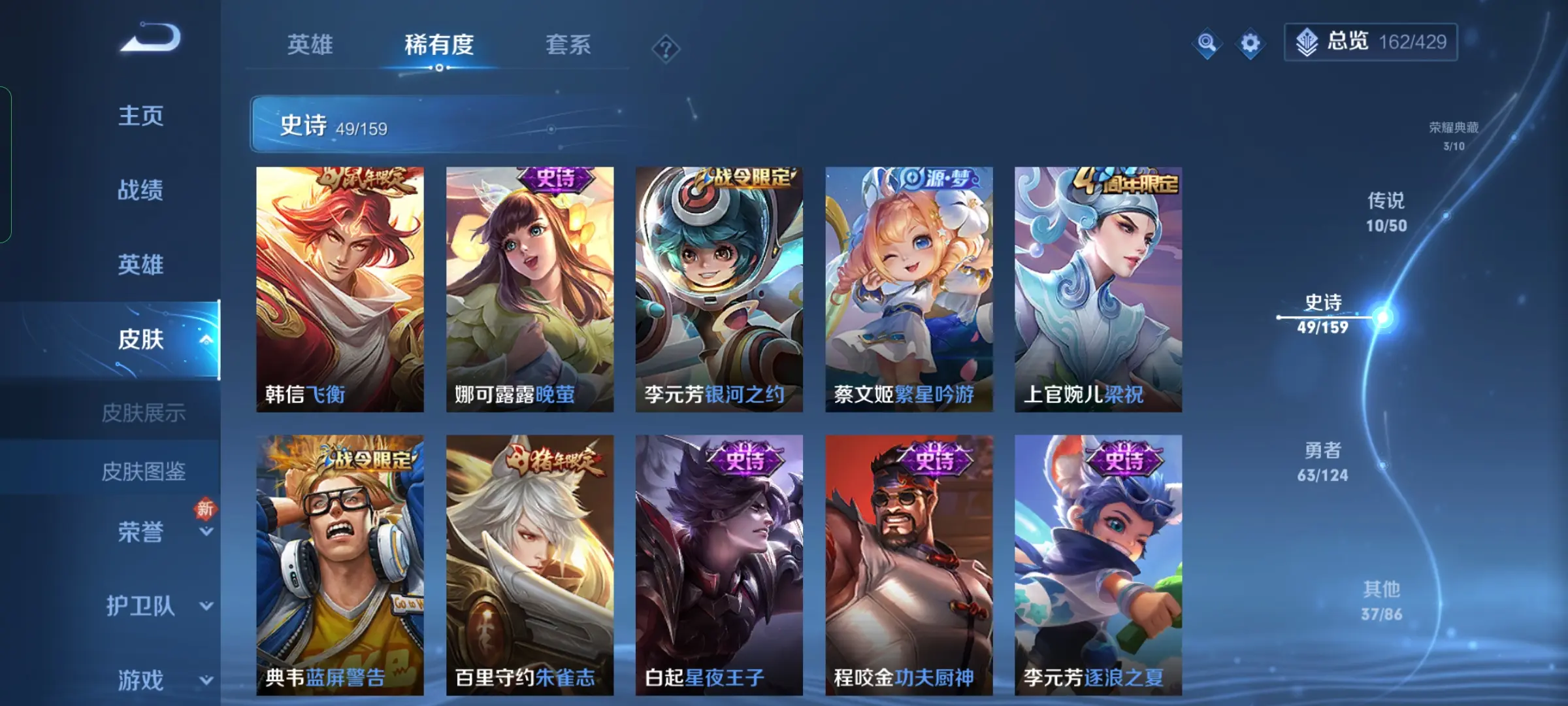 | 英雄: 124 | 皮肤: 203 |