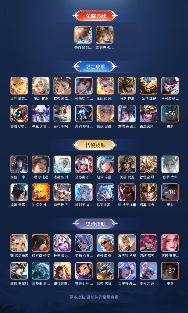 本游戏账号: V10用户,基础段位:至尊星耀IV,英雄多,皮肤多。典藏皮肤2个,感受典藏皮肤带来的优质体验快感,FMVP皮肤6个,尽情享受FMVP皮肤带来的主角光环, 私人所属英雄皮肤有:李白 鸣剑·曳影||武则天 倪克斯神谕铠 绛天战甲||孙尚香 末日机甲||周瑜 音你心动||马可波罗 深海之息||狄仁杰 超时空战士||达摩 黄金狮子座||武则天 海洋之心||貂蝉 仲夏夜之梦||王昭君 乞巧织情||张良 黄金白羊座||孙悟空 地狱火||后羿 黄金射手座||李元芳 飞鸢探春||小乔 音你心动,等等