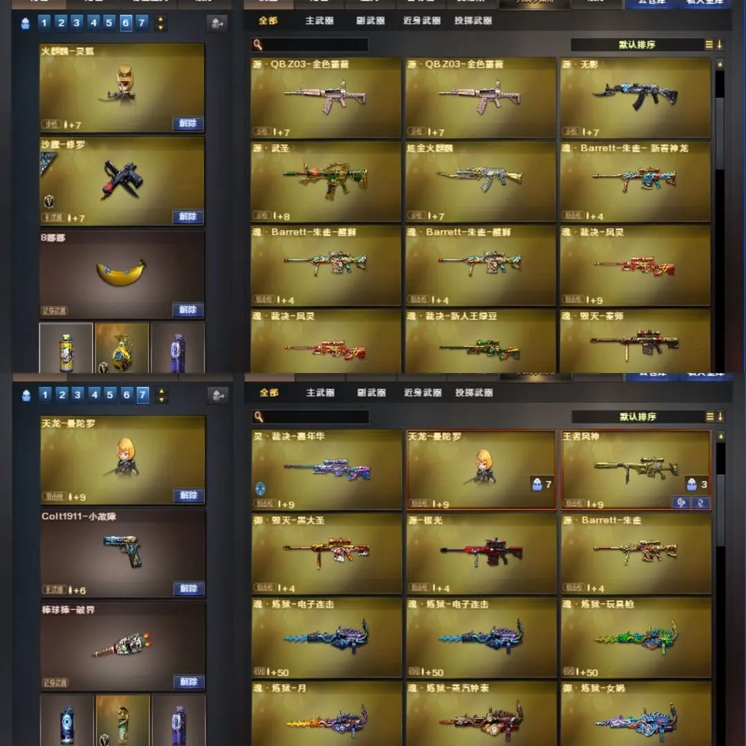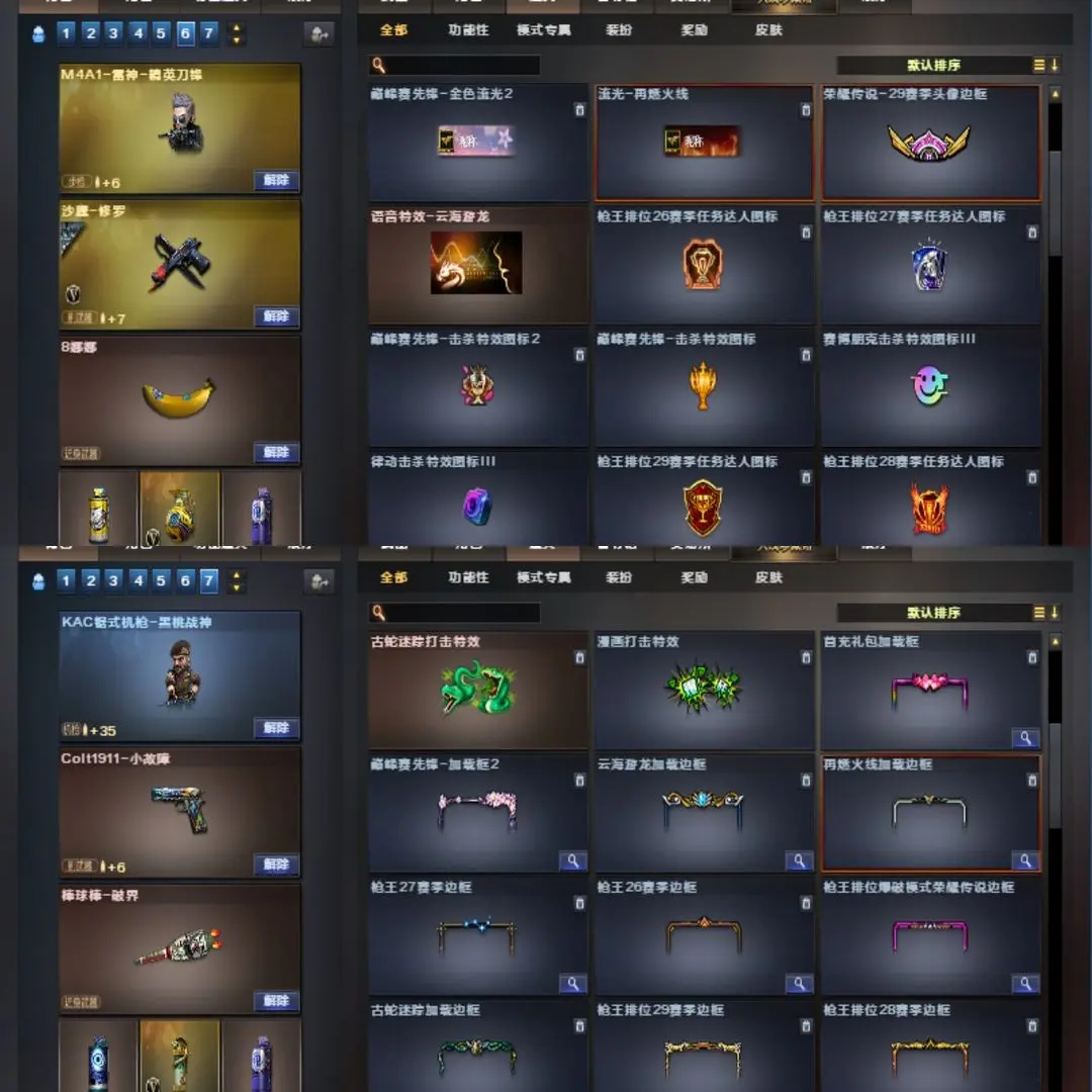 周瑜幻神(幻神音效)丨AG星神(星神音效)丨王者风神丨G36C幻影丨荣耀世冠柯尔特丨COP幻灵丨影豹(四防)丨王者凌霄丨古蛇迷踪套丨裁决丨王者风势(觉醒)丨王者之光(觉醒)丨王者猎神丨炫金火麒麟丨雷神精英刀锋丨火麒麟灵狐丨天龙曼陀罗丨KAC锯式机枪黑桃战神丨猫枪丨金色小号丨黑骑士音效丨极光音效