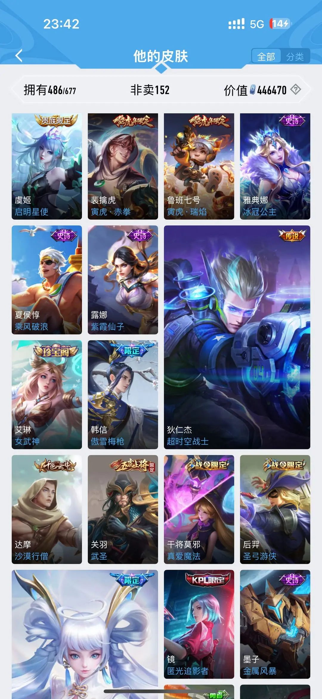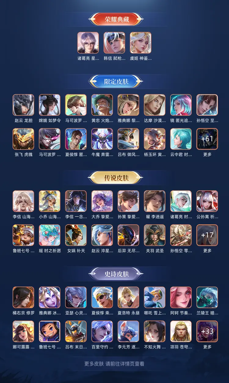 本游戏账号: V10用户,基础段位:永恒钻石II,英雄多,皮肤多。典藏皮肤3个,感受典藏皮肤带来的优质体验快感,FMVP皮肤8个,尽情享受FMVP皮肤带来的主角光环, 私人所属英雄皮肤有:韩信 弑枪猎影||虞姬 神鉴启示录||诸葛亮 星域神启嬴政 玄雷天君||王昭君 映山客||小乔 山海·琳琅生||李信 山海·炽霜斩||桑启 鸣野蒿||庄周 牧神诗旅||梦奇 胖达荣荣||铠 冥王哈迪斯||后羿 无尽星芒||王昭君 乞巧织情||诸葛亮 时雨天司||大乔 挚爱花嫁||孙策 挚爱之约||艾琳 觅芳踪||公孙离 记忆之芯||周瑜 音你心动||小乔 音你心动||吕布 天魔缭乱||李信 一念神魔||墨子 黄金天蝎座||孙尚香 末日机甲||亚连 落雪白狼||吕布 曦玄引||貂蝉 曦玄引||典韦 战鼓燎原||赵云 乘龙·铭钟鼎||孙策 乘龙·淬吴钩||孙尚香 乘龙·问璇玑||马超 琥珀纪元||赵云 淬星耀世||女娲 补天||铠 绛天战甲||李元芳 飞鸢探春||大乔 时之奇旅||吕布 遇见神鼓||