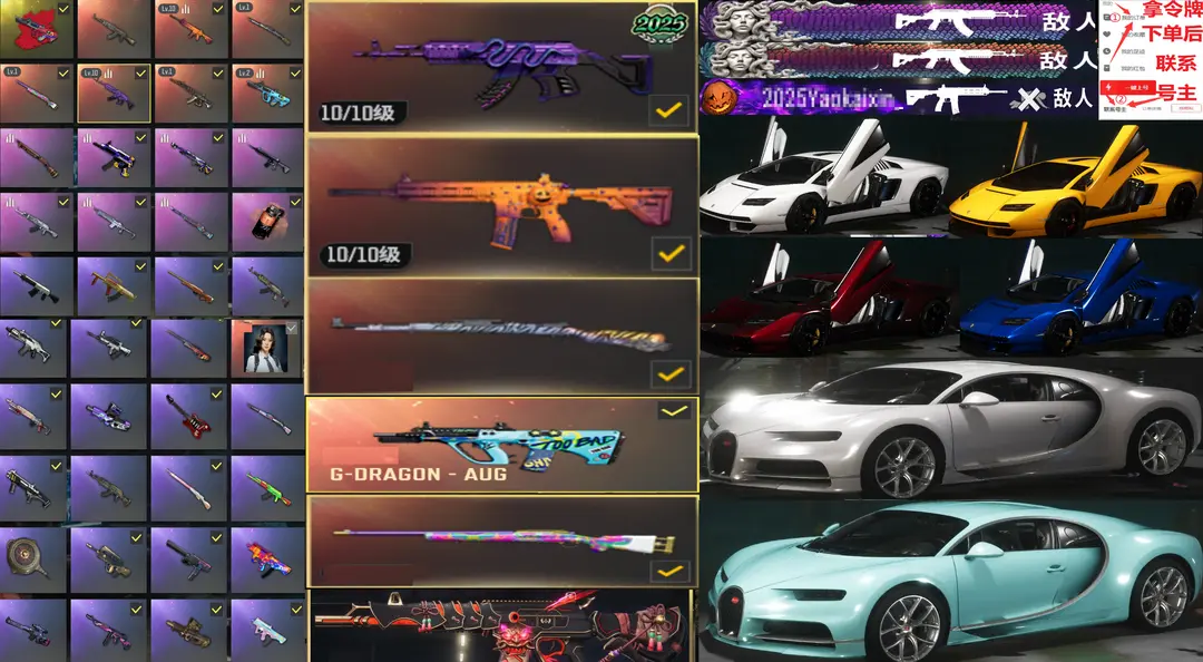 布加迪威龙兰博基尼跑车✅⑩美杜莎762⑩捣蛋M4AUGM24妖魔ACE猛虎瀚娜战神东南亚柏林黑可排位