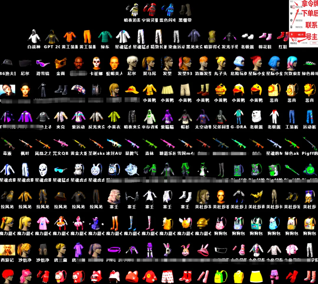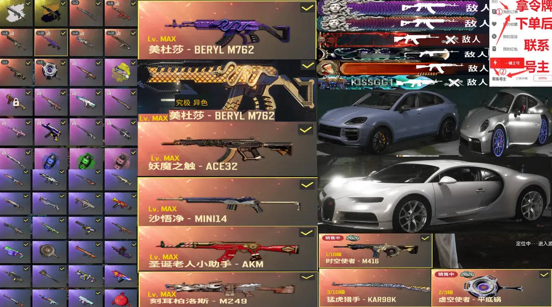 全满级神器✅⑩异色美杜莎762⑩ACE妖魔⑩AK⑩迷你⑩M249虚空时空布加迪黑人战神东南尼尔可排位