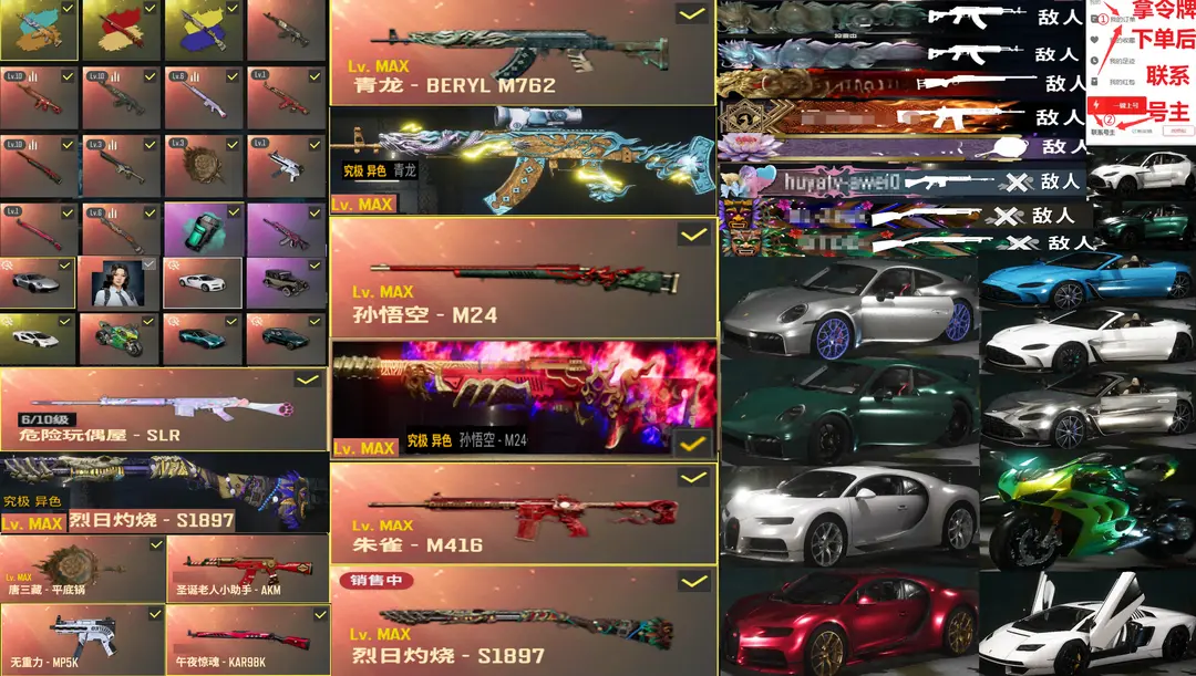 布加迪保时捷911兰博基尼马丁✅⑩异色金龙青龙M762⑩异色M24悟空⑩朱雀⑩烈日189杜卡迪可排位