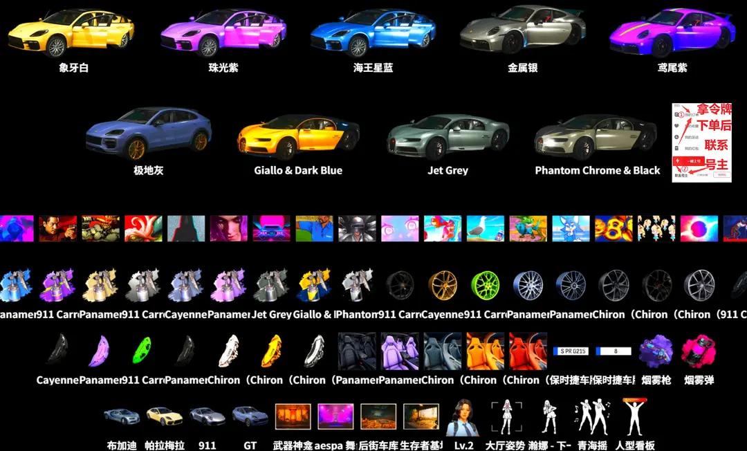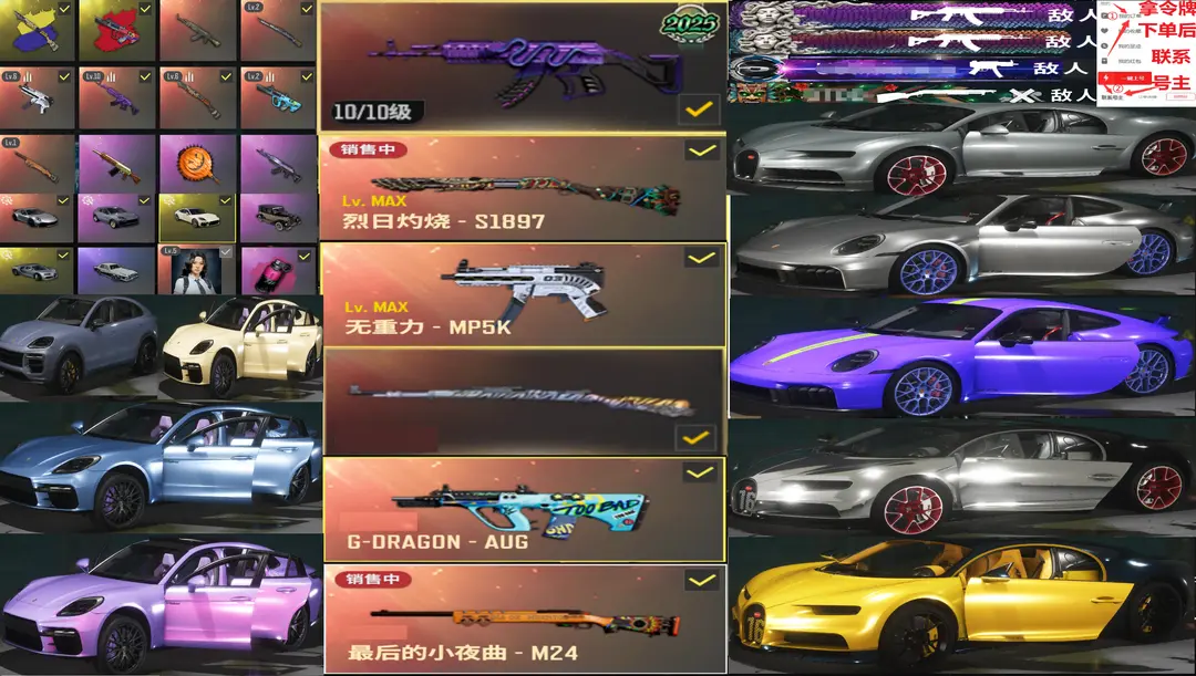 满车布加迪保时捷911帕拉GT✅⑩美杜莎762满级烈日189满级MP5猛虎AUG小夜曲瀚娜战神可排位