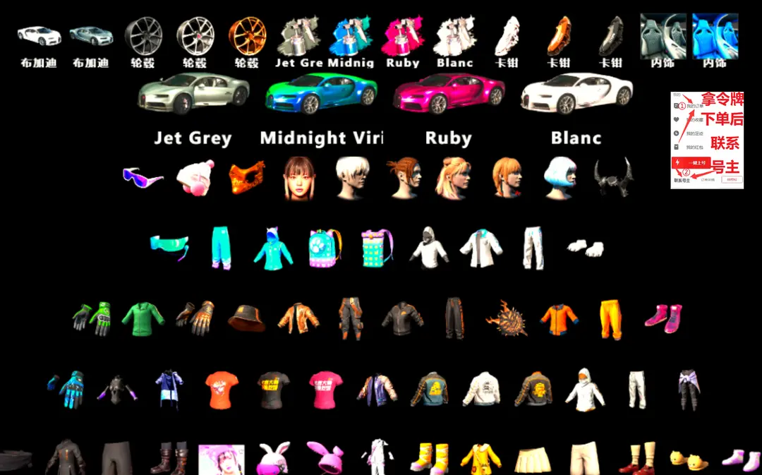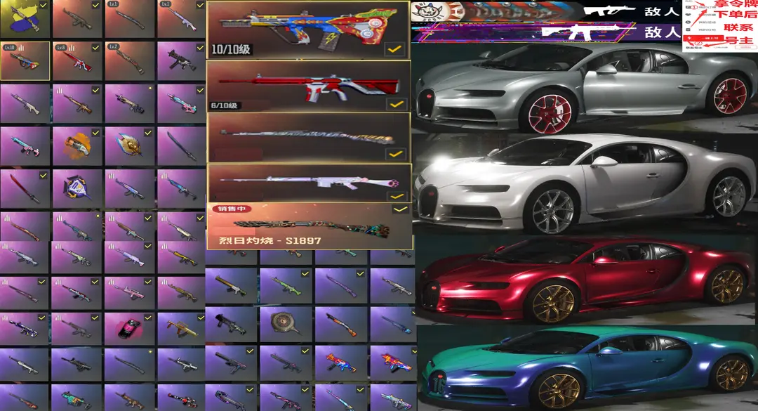 全色布加迪威龙跑车✅⑩AUG爆裂无信号M4烈日S189猛虎玩偶滑雪尼尔东南亚拉风柏林战神金面具可排位