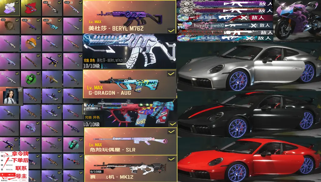 保时捷✅⑩异色美杜莎M762⑩异色AUG⑩玩偶炮娘危机MK瀚娜杜卡迪战神柏林尼尔黑人滑雪god可排位