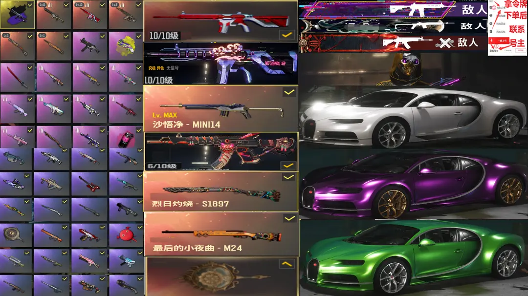 布加迪威龙✅⑩无信号M4满级沙悟净迷你⑥妖魔ACE烈日小夜曲渔夫帽金面绑带滑雪黑人尼尔马尾烟雾可排位