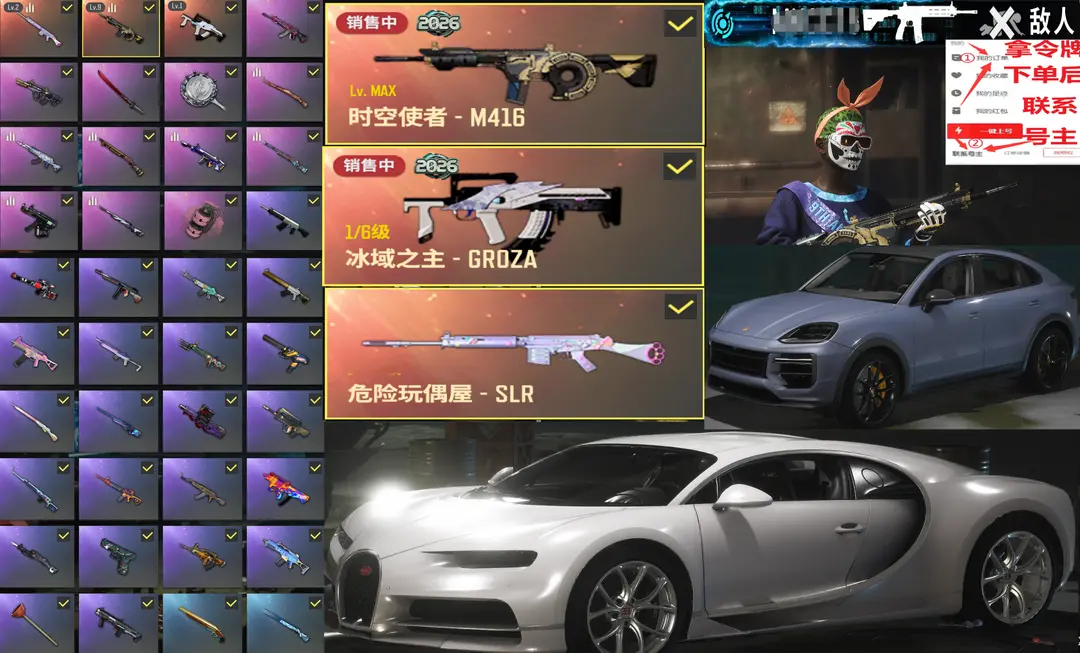 新成长皮肤✅⑩时空使者M4冰域自主狗扎玩偶大炮布加迪威龙跑车保时捷柏林战神悲喜绑带夹克可排位
