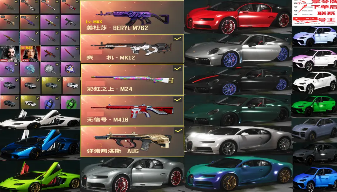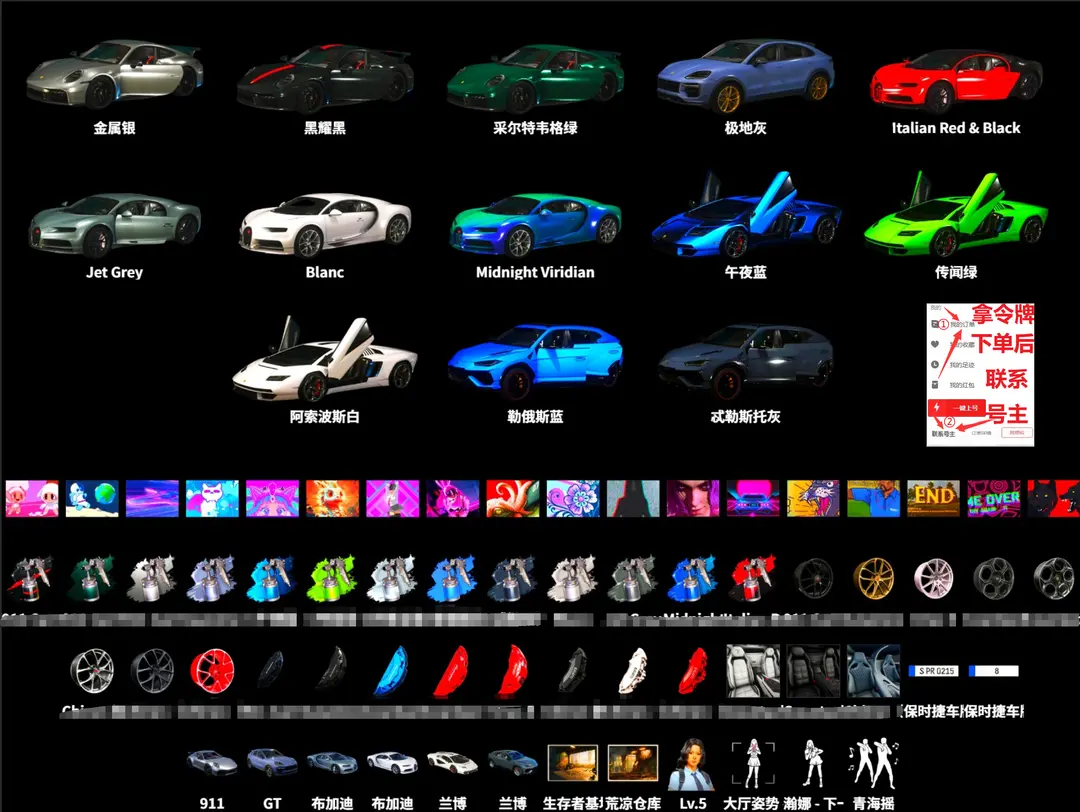 全车布加迪威龙保时捷911兰博基尼✅⑩美杜莎762MKM24满级瀚娜黑人柏林战神滑雪GT金面具可排位