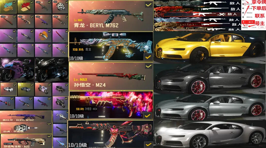 布加迪威龙杜卡迪✅⑩异色金龙青龙M762⑩异色M24悟空⑩ACE妖魔锅AUG战神黑人柏林东南亚可排位