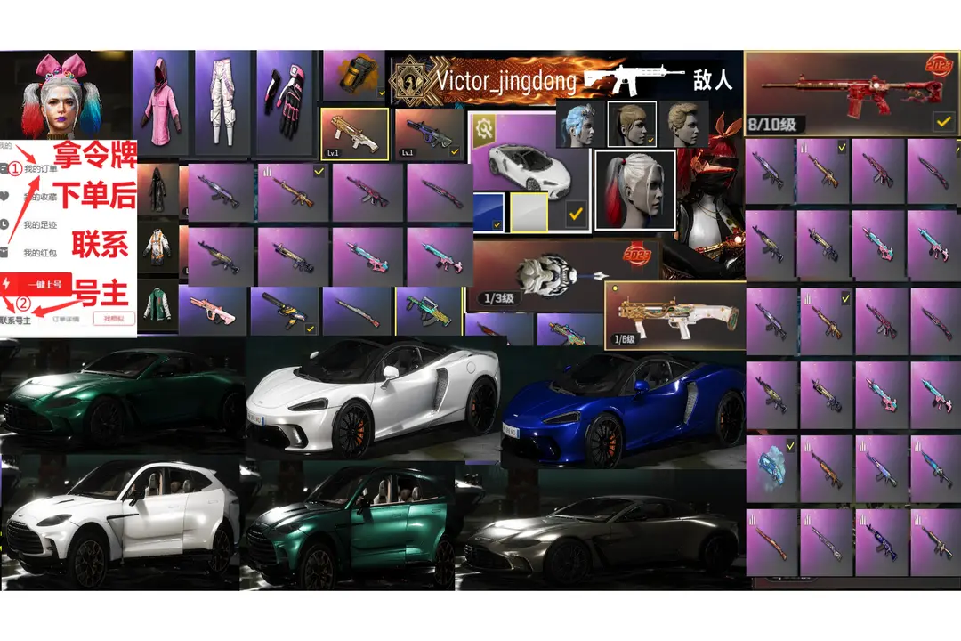 1900皮9神器7车阿斯顿马丁迈凯伦小丑女柏林战神✅8级M4朱雀击杀特效青龙霓虹AUG杜卡可排位