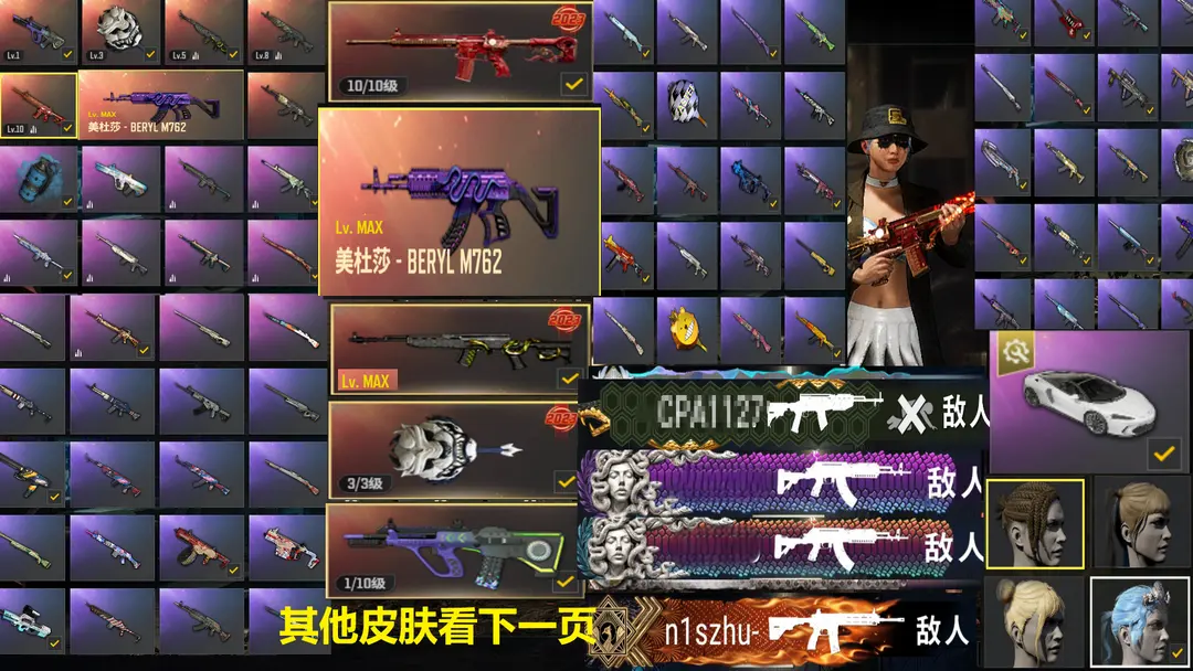 2000皮7神器✅⑩M4朱雀⑩美杜莎762满级SKS玄武满级锅霓虹迈凯伦马尾烟雾悲喜跑车可排位