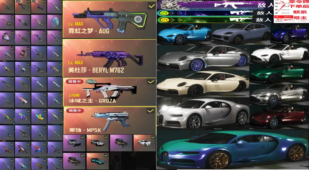 新跑车保时捷911布加迪威龙阿斯顿马丁GT✅⑩霓虹AUG⑩美杜莎762黑人柏林战神悲喜拉风滑雪可排位