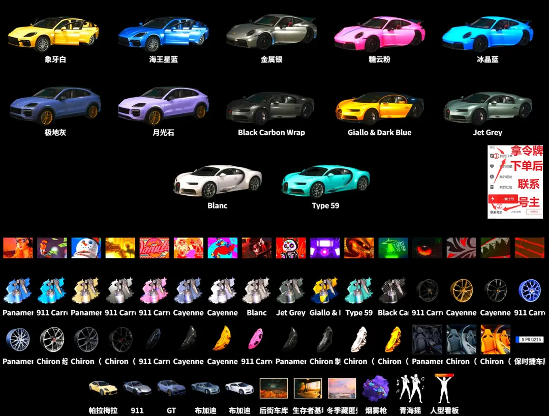 全满跑车布加迪威龙保时捷911帕拉梅拉✅⑩M24最后的小夜曲小丑女战神滑雪金面具马尾柏林悲喜可排位