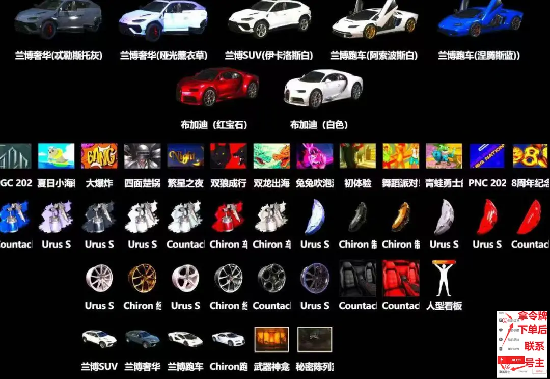 布加迪兰博基尼跑车✅⑩异色金龙青龙M762⑩异色M24孙悟空⑧午夜98K烈日尼尔战神柏林东南亚可排位