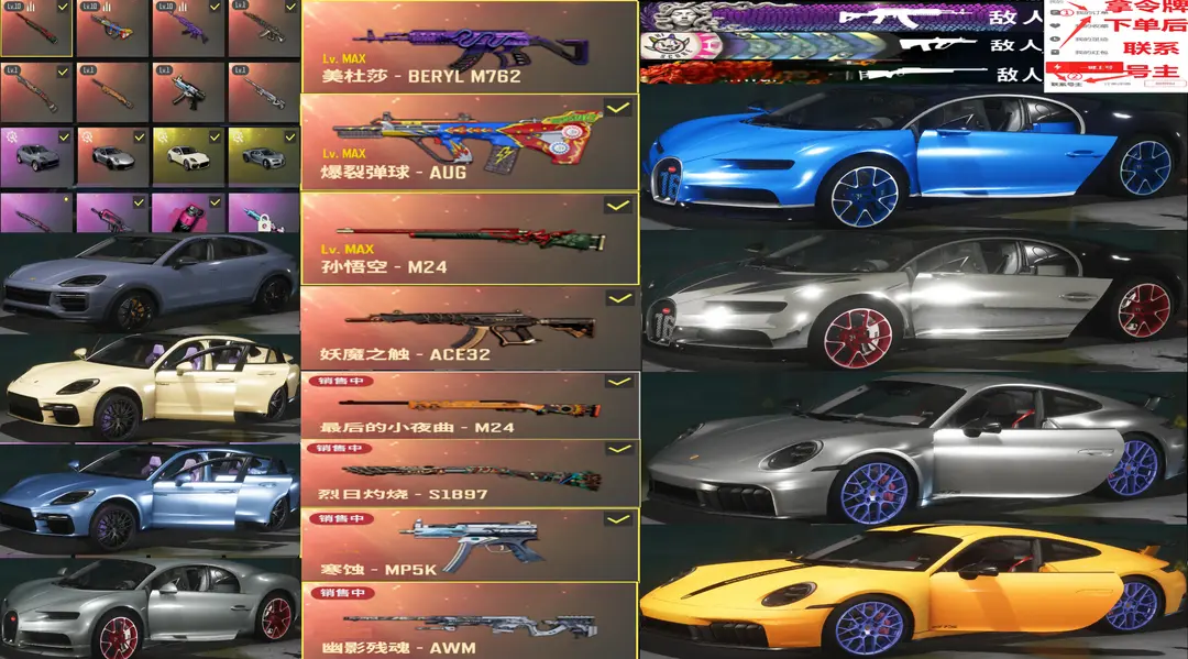 全跑车布加迪保时捷✅⑩美杜莎762⑩M24孙悟空⑩AUG爆裂烈日幽影帕拉梅拉战神黑人尼尔东南亚可排位