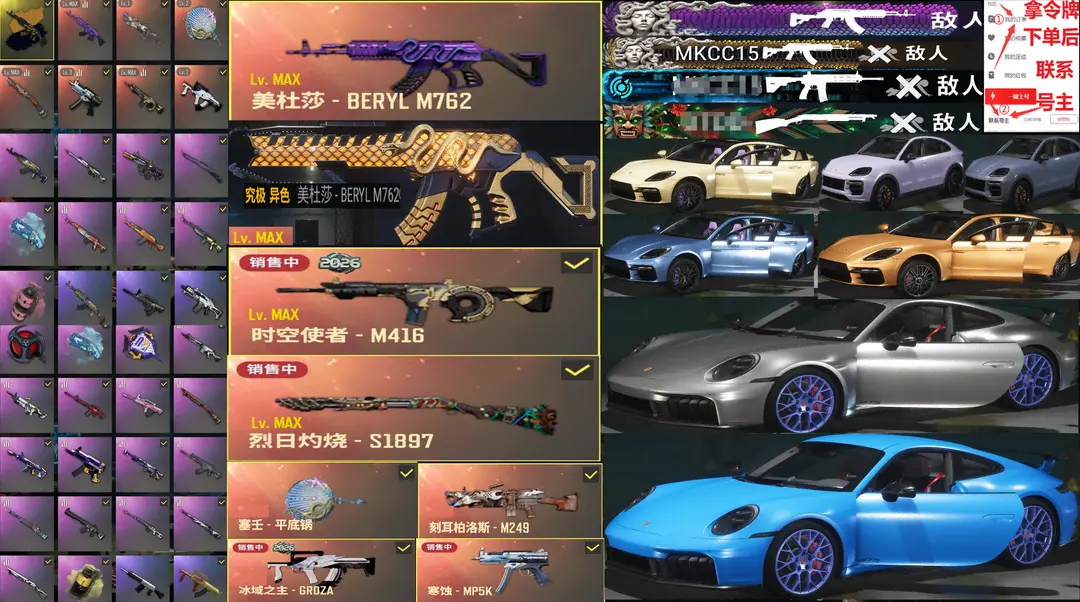 10满神器全车布加迪保时捷911✅⑩异色美杜莎⑩时空使者M4⑩烈日S189喷东南亚柏林黑人战神可排位
