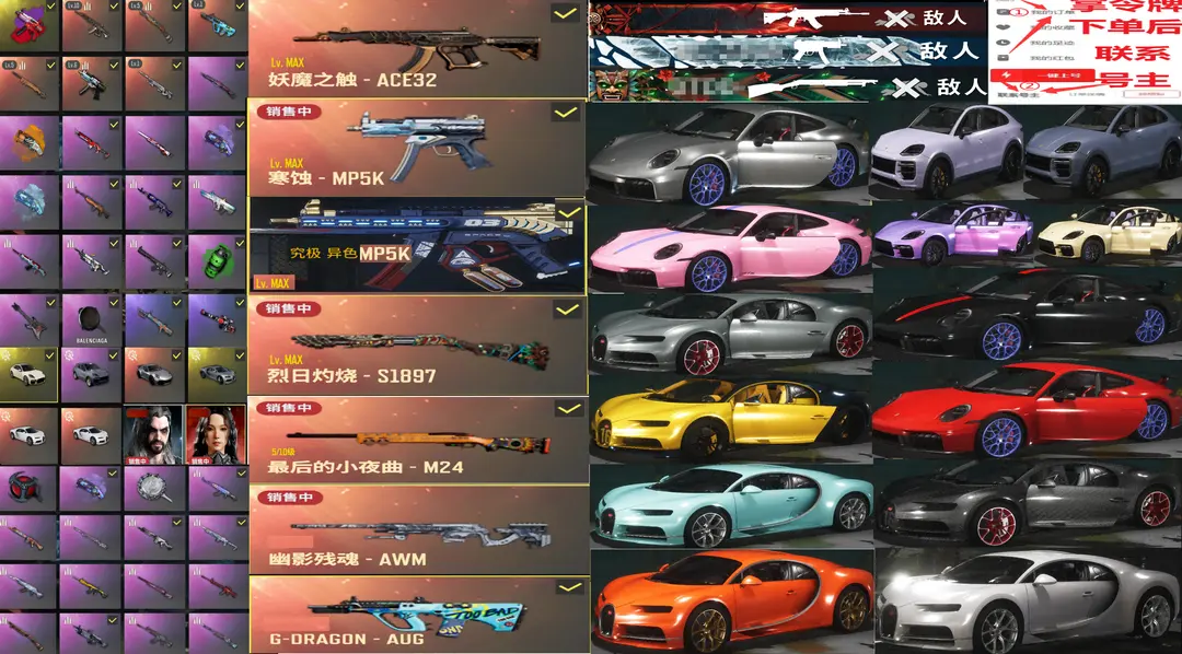 满跑车布加迪威龙保时捷911帕拉梅拉GT✅⑩妖魔ACE满级烈日189MP5M24小夜曲翰娜多利安排位