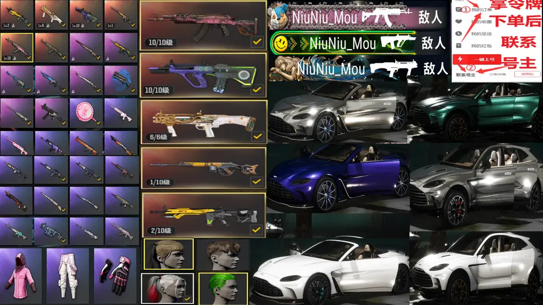 2000皮6神器10车阿斯顿马丁✅⑩火麒麟⑩霓虹AUG⑥亚特兰DBS双头小丑战神柏林齿轮大炮可排位