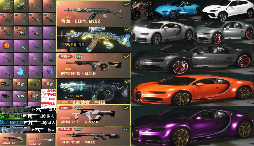 新神器布加迪威龙马丁杜卡迪✅⑩异色青龙M762金龙⑧异色时空M4冰域暗影彩虹战神柏林黑人绑带可排位