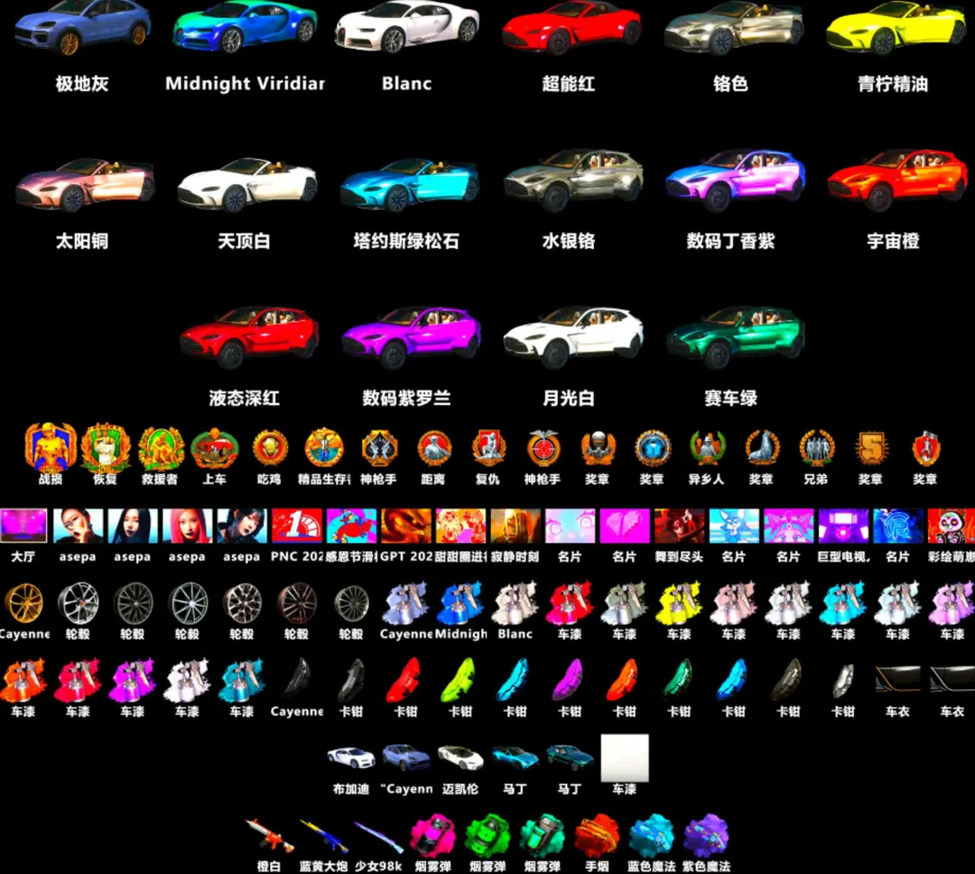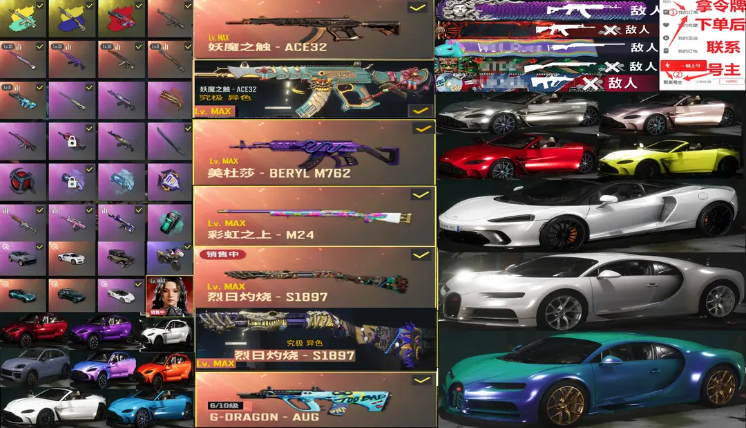 满跑车布加迪马丁迈凯伦✅⑩美杜莎762⑩异色ACE妖魔⑩M24⑩烈日189AUG⑩瀚娜小黑柏林可排位