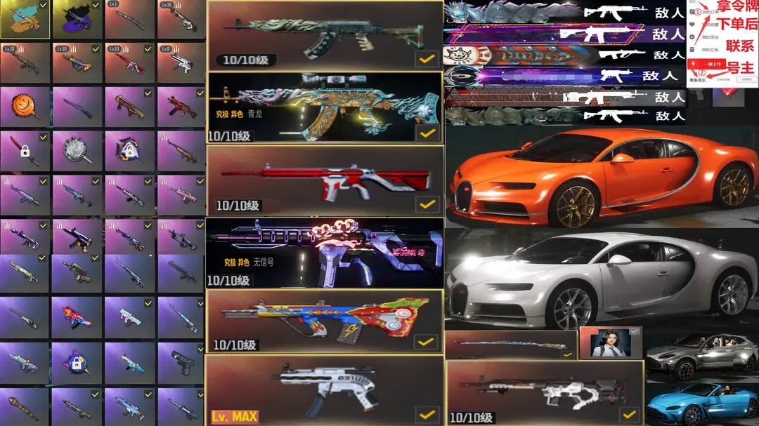 布加迪✅⑩金龙⑩异色青龙M762⑩异色M4无信号⑩AUG爆裂⑩MK危机⑩MP5瀚娜尼尔黑人战神可排位