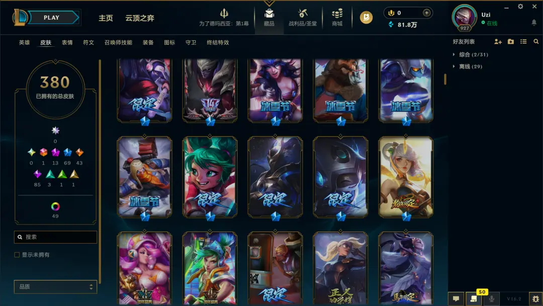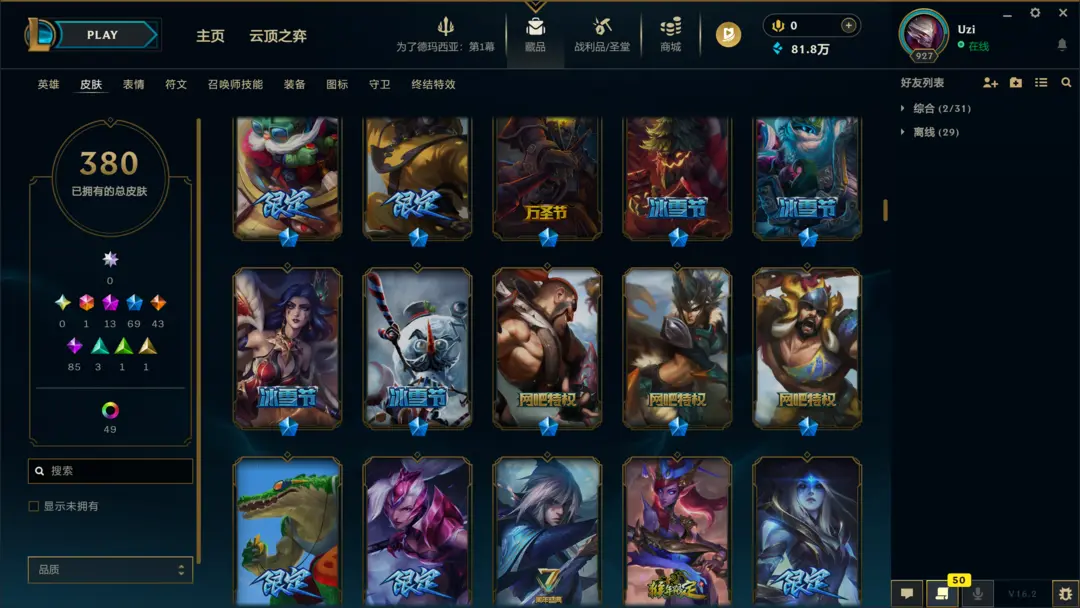 | 角色: Uzi#73898 | 等级: 943级 华贵铂金II |